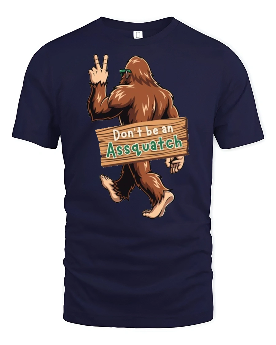 Dont Be An Assquatch Funny Bigfoot Graphic T Shirt Humor Style Tee - navy t-shirt on white background