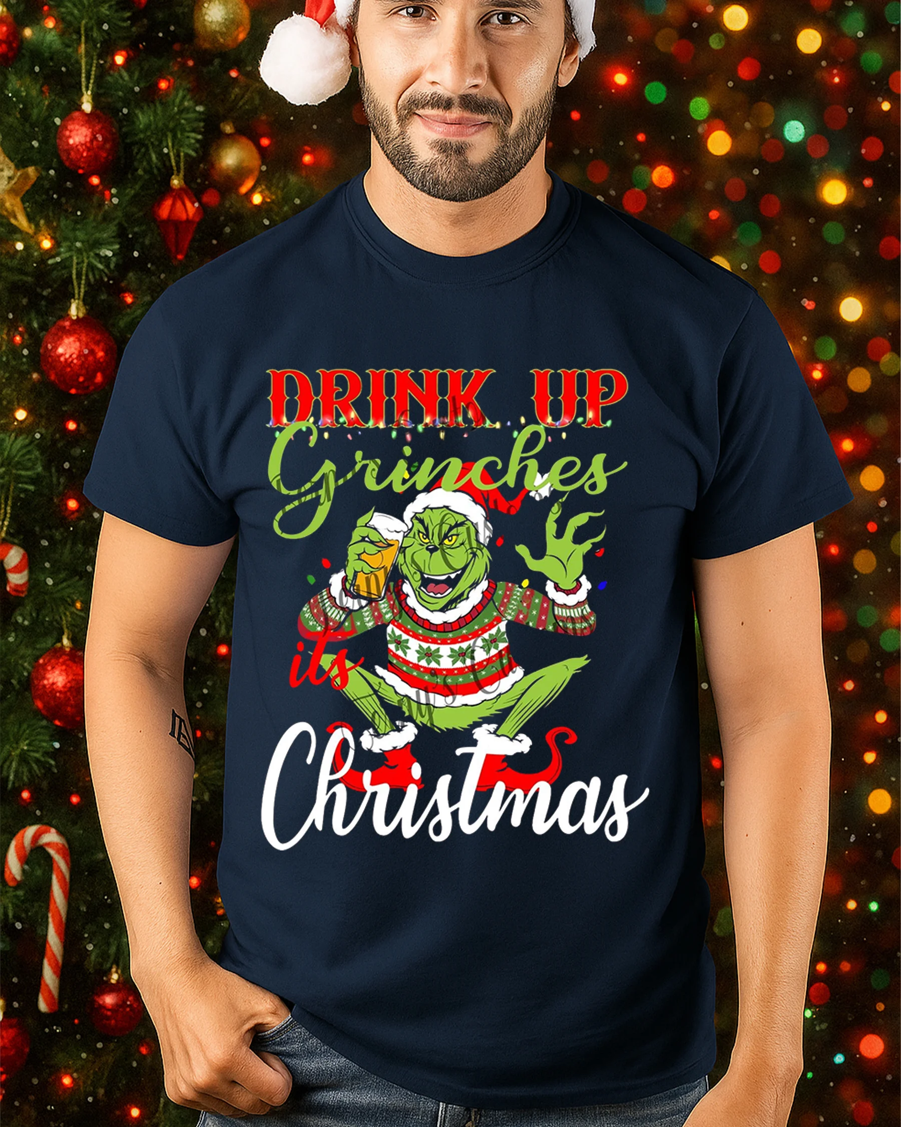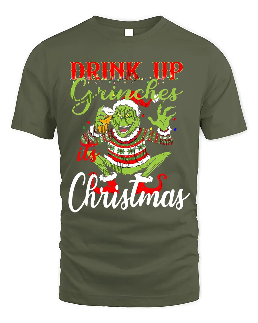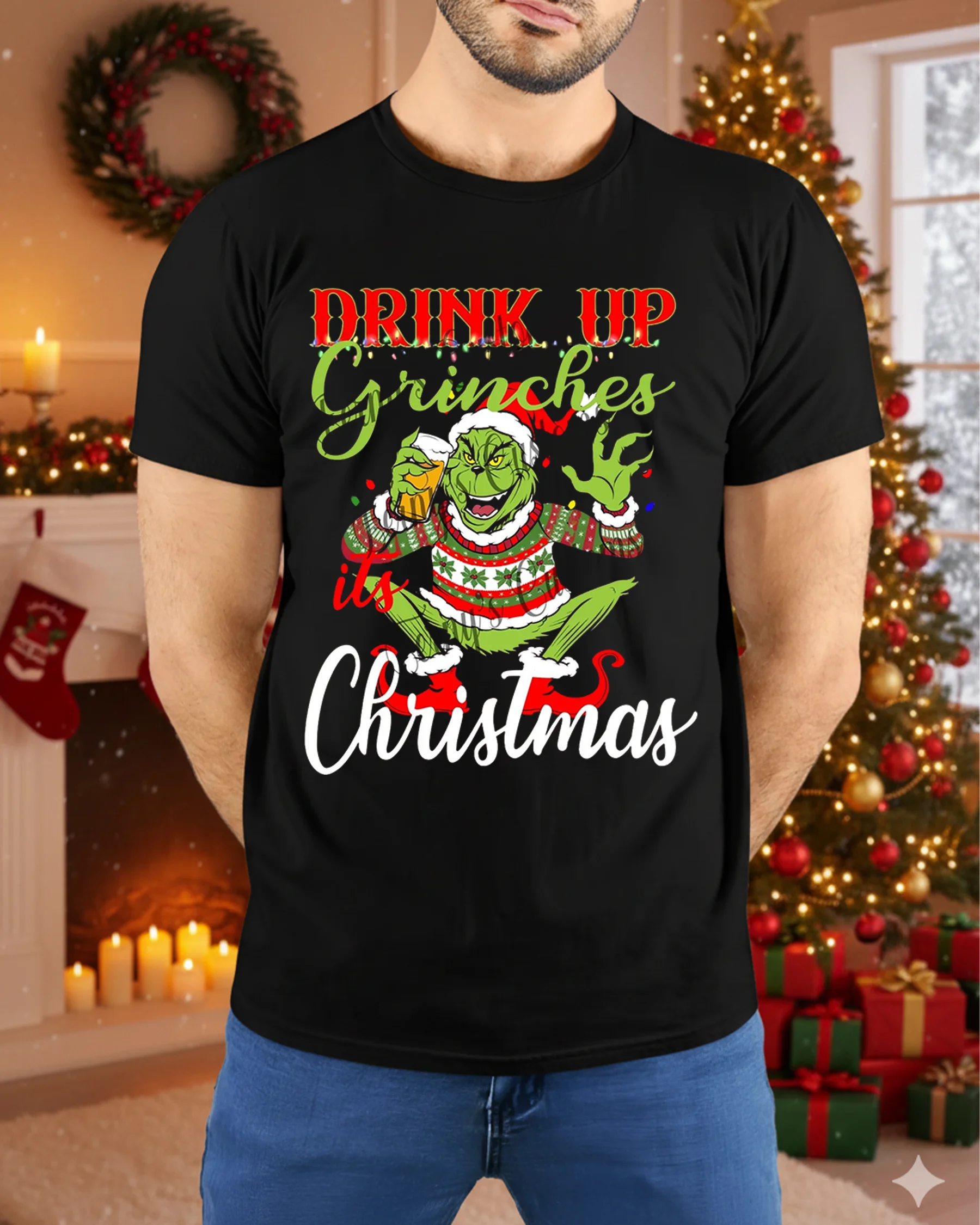 Bring laughter and festive mischief to your holiday gatherings with our Drink Up Grinches Funny Christmas Party Holiday T-Shirt. Featuring a cheerful green character in a Santa hat and holiday sweater raising a drink, this design perfectly captures the spirit of fun, humor, and celebration that makes Christmas unforgettable. It’s the ideal tee for anyone who enjoys spreading joy with a playful twist.