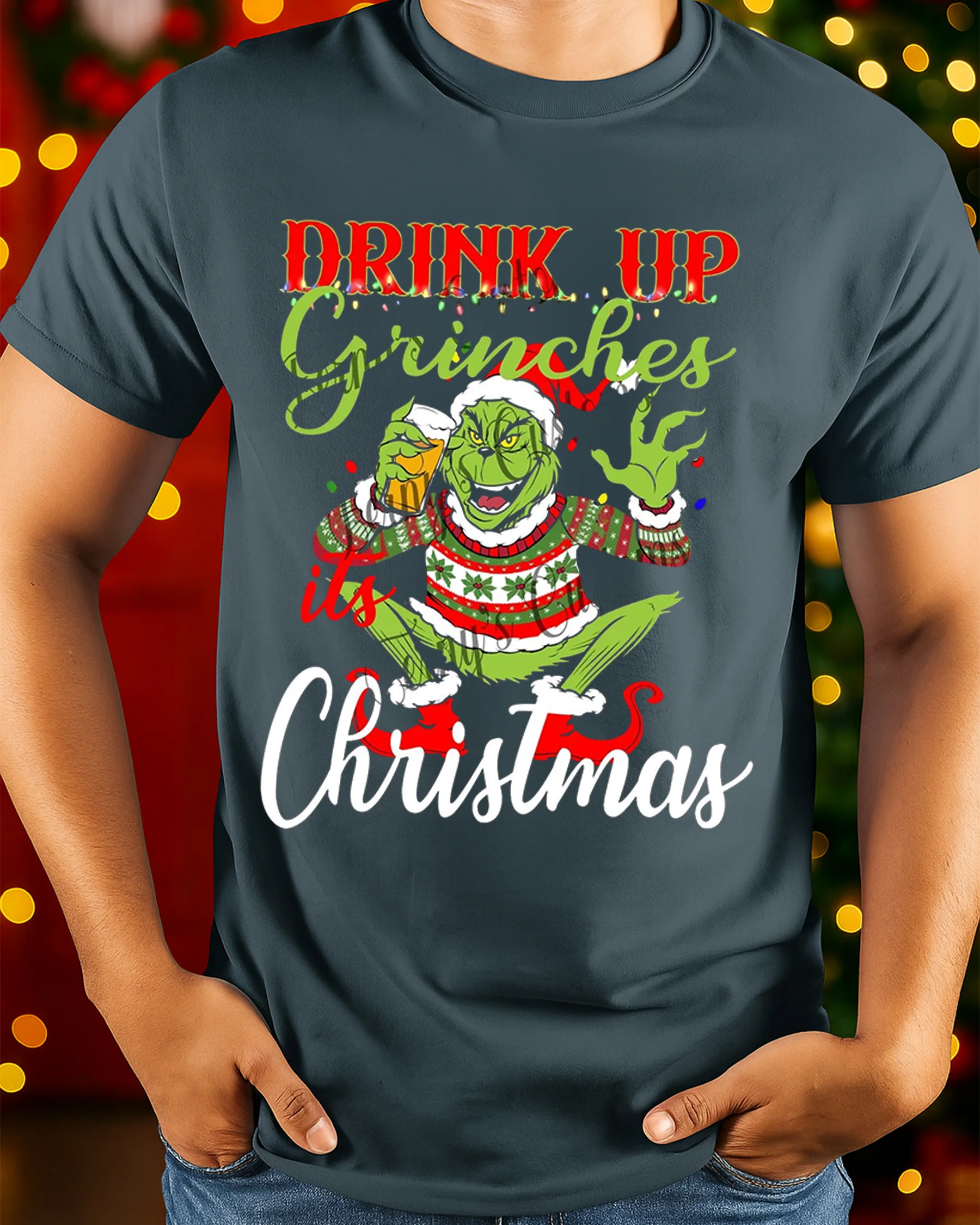 The Drink Up Grinches Funny Christmas Party Holiday T-Shirt makes a hilarious gift for friends, family, or coworkers who love to celebrate the holidays with a sense of humor. Add this unique shirt to your Christmas collection and make this season a little more “grinchy” and a lot more fun!