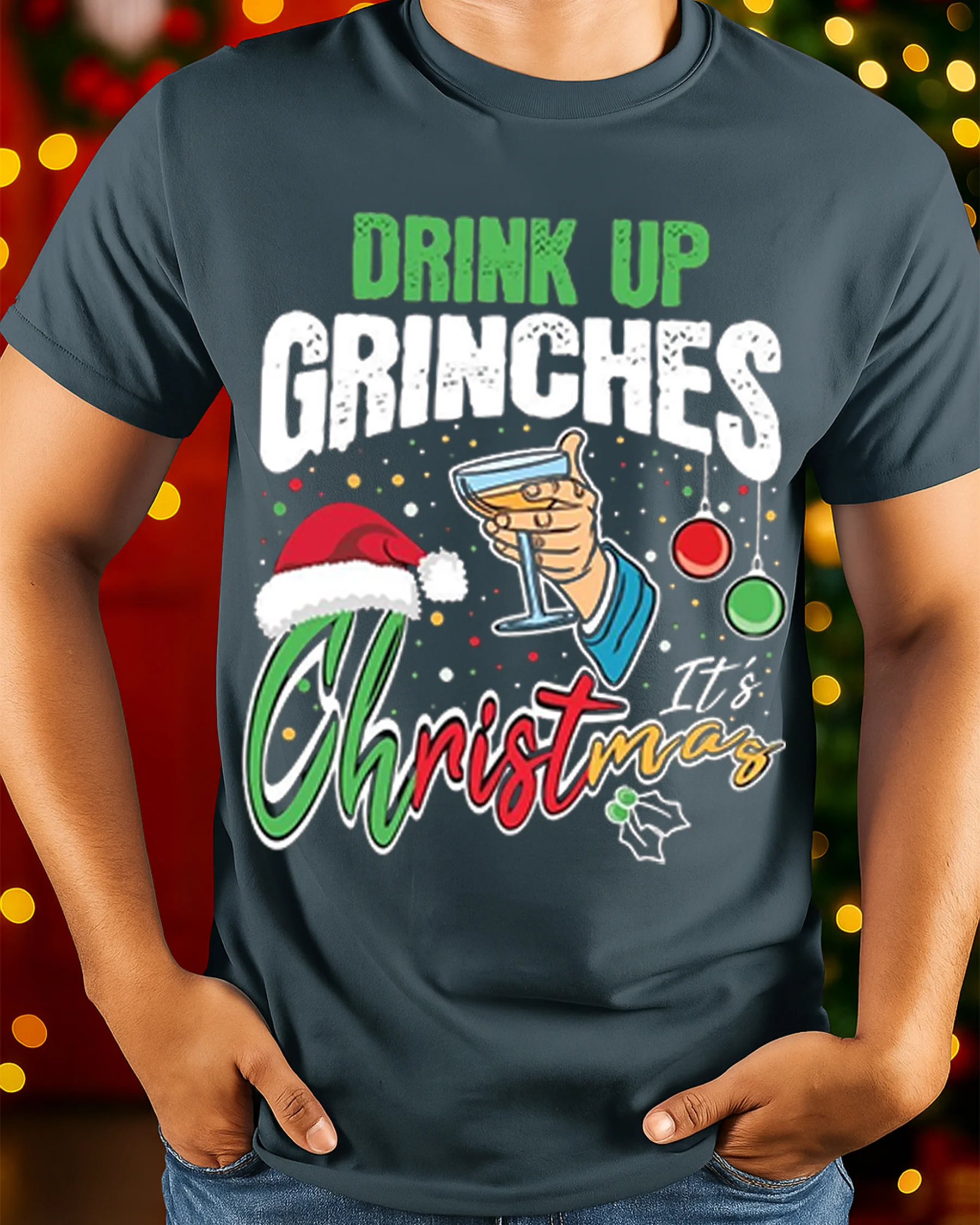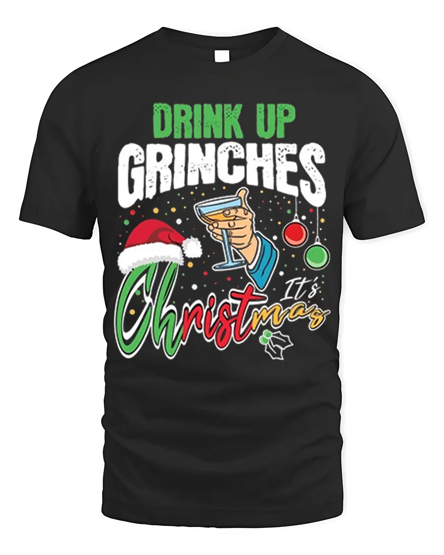 Drink Up Grinches T-Shirt Funny Christmas Party Holiday Tee