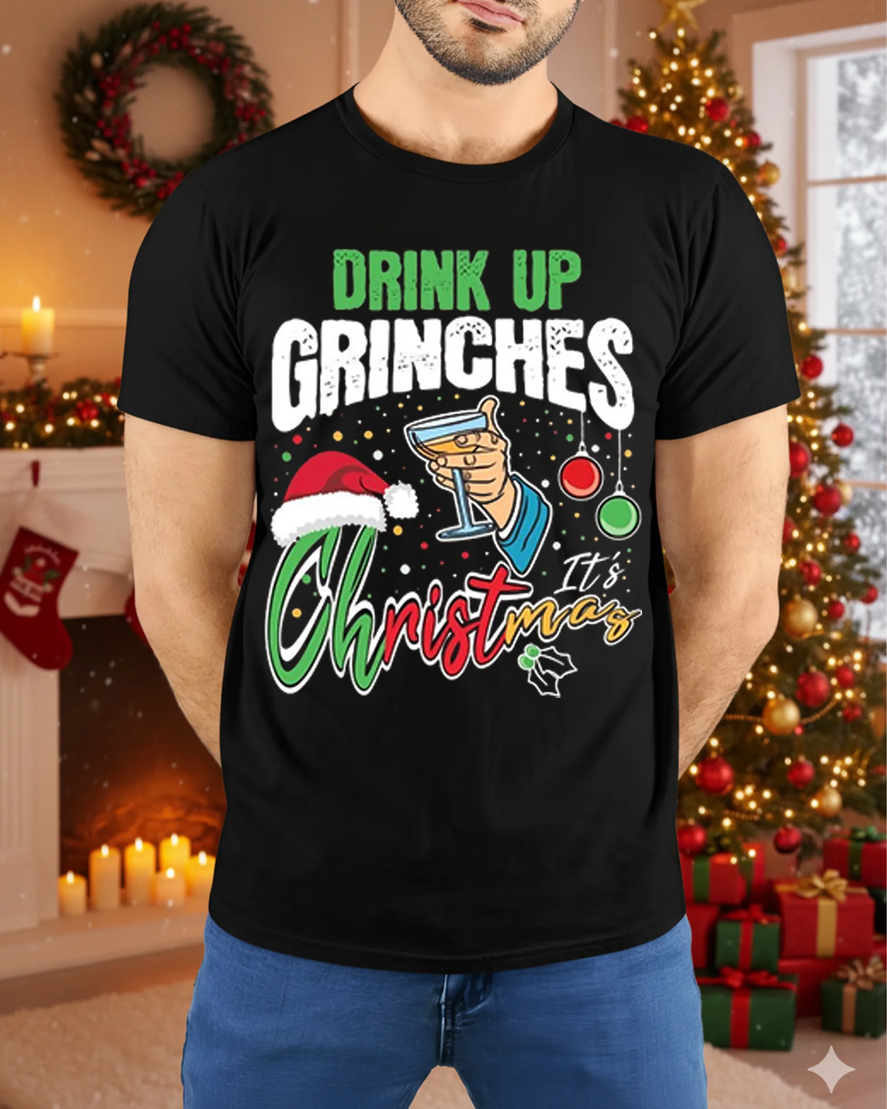The Drink Up Grinches T-Shirt Funny Christmas Party Holiday Tee also makes a hilarious and thoughtful gift for friends, coworkers, or family members who love a good drink and a great laugh. Pair it with jeans or festive accessories for a fun, relaxed holiday look. Celebrate Christmas your way — with good company, great drinks, and the perfect shirt to match your spirit.