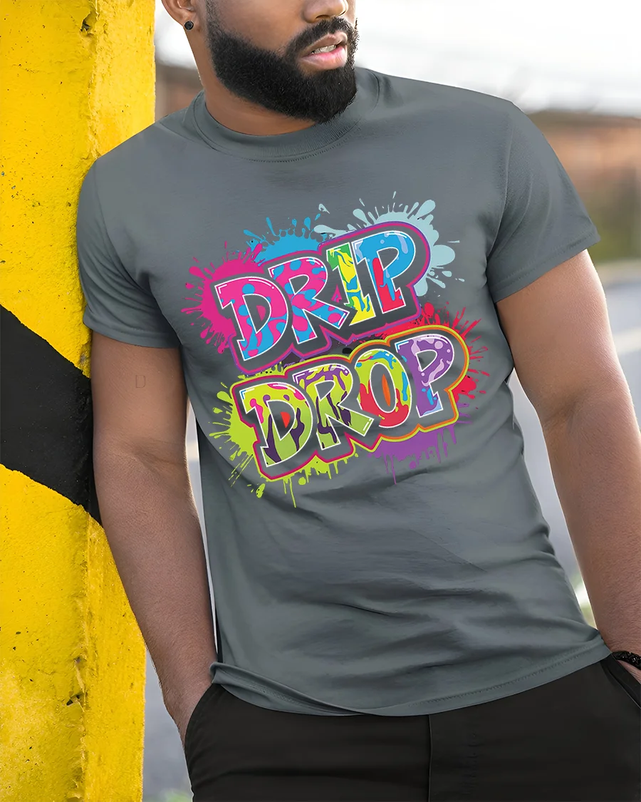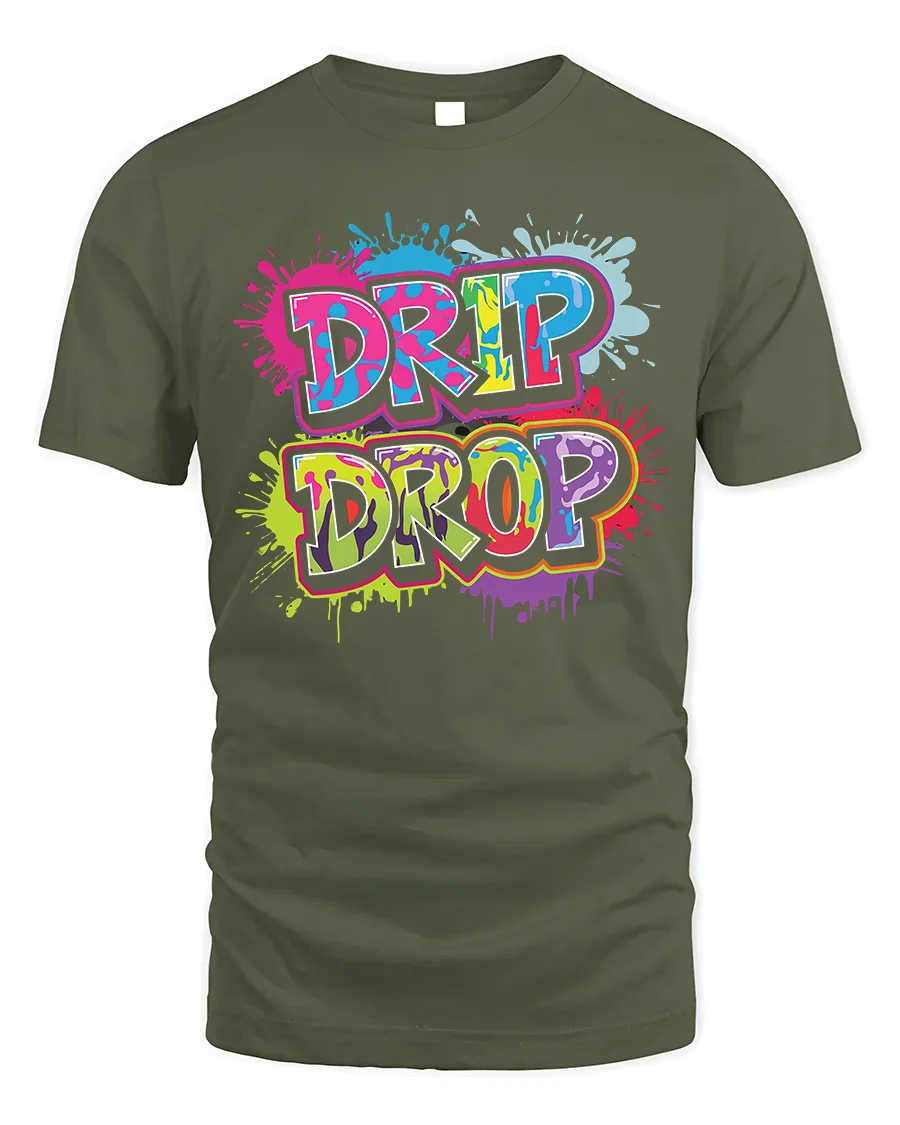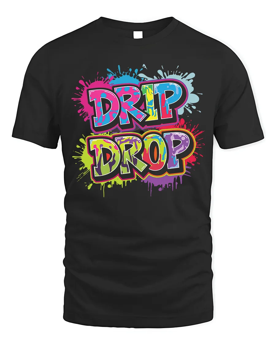 Drip Drop Graffiti Splash Neon Street Art Colorful Graphic T-Shirt bursts with bold energy and vibrant artistic expression. Featuring graffiti-style lettering surrounded by splashes of neon paint, this design captures the raw creativity of street art culture. The bright mix of pink, blue, yellow, green, and purple brings a dynamic and urban aesthetic that instantly stands out in any setting.