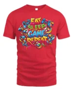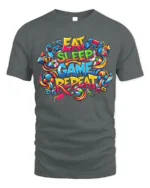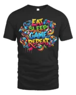 Be the first to review “Eat Sleep Game Repeat Neon Gamer Art Colorful Graphic T-Shirt” Cancel reply
