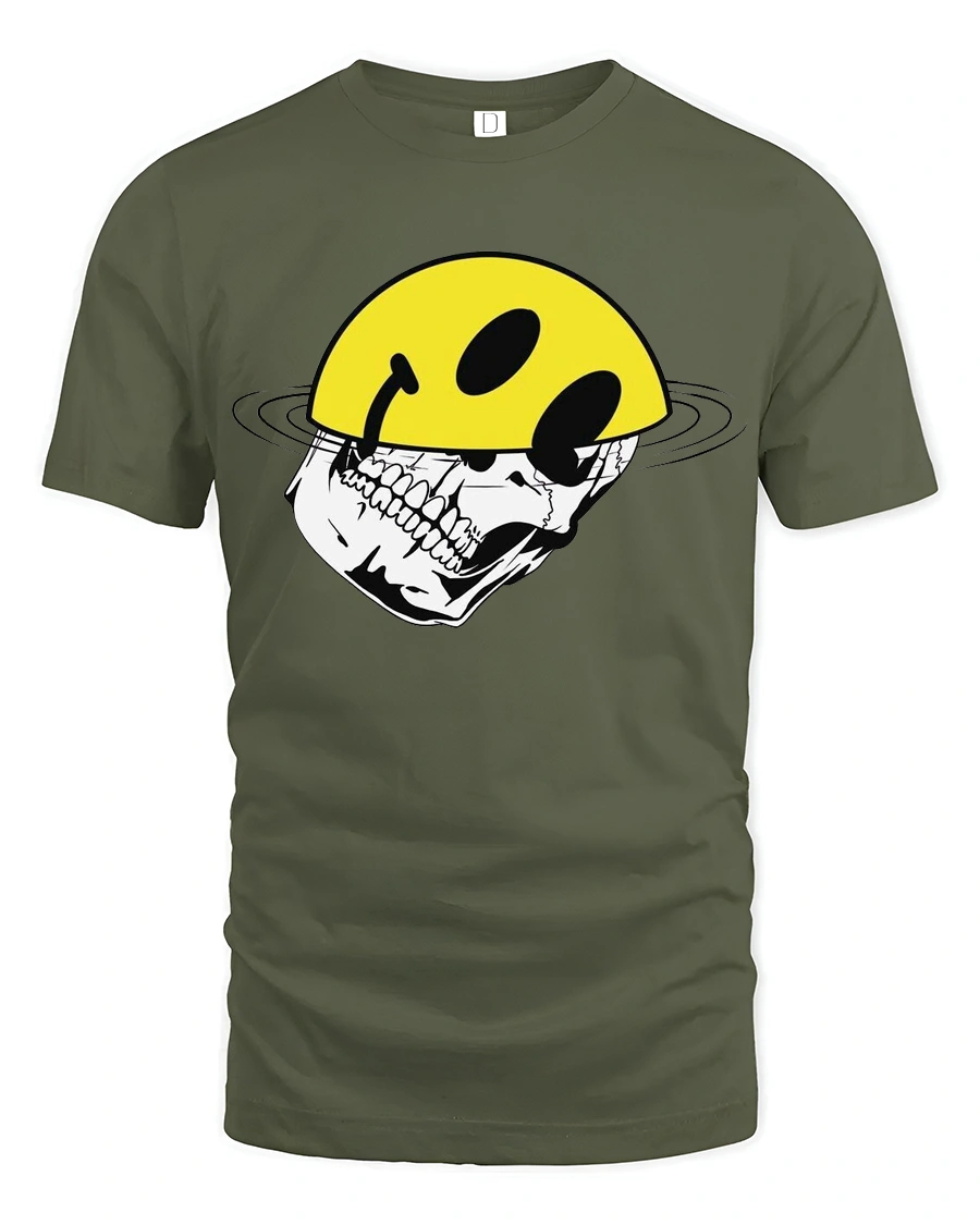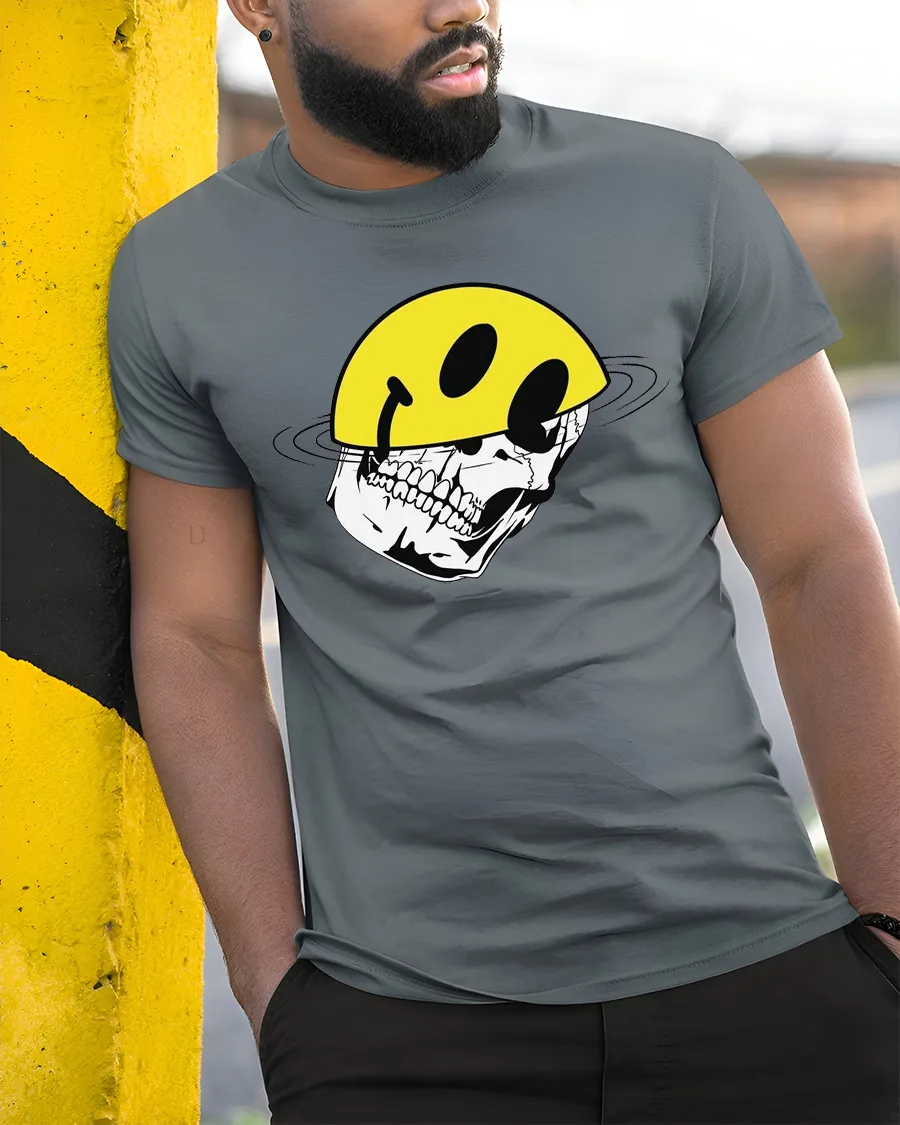 Funny Skull Smile Helmet Graphic Tee Tshirt Cool Streetwear Style brings a bold mix of humor and edgy design into one standout piece.