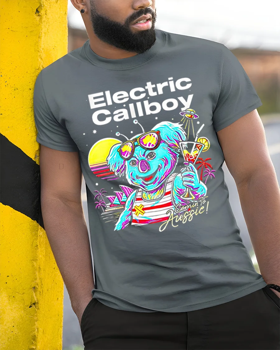The Electric Callboy Koala Neon Graphic T-Shirt Retro Party Tee also makes a fantastic gift for music fans, travelers, and anyone who enjoys fun, upbeat artwork. Pair it with jeans, shorts, or layered streetwear pieces for a stylish look full of personality. Bring bright Aussie energy, neon retro aesthetics, and party-ready style into your wardrobe with this unforgettable graphic tee.
