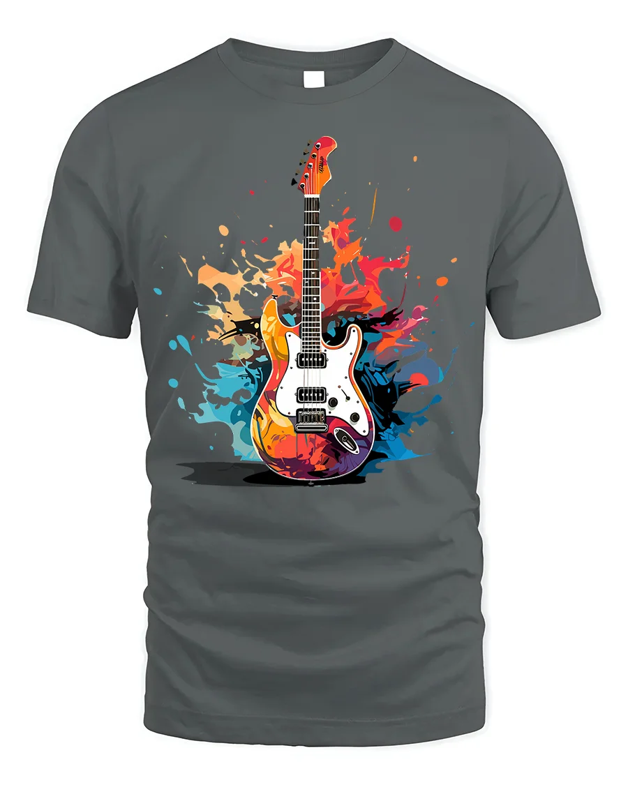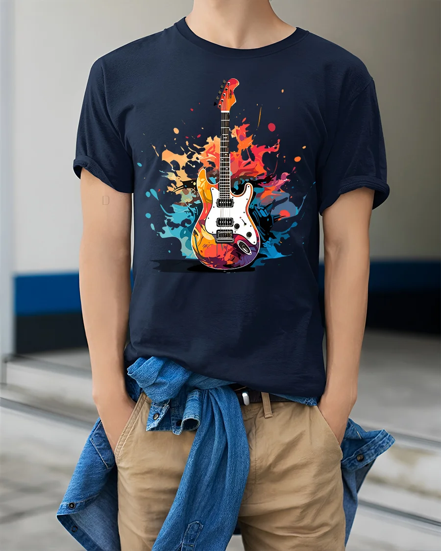 The Electric Guitar Splash Art Graphic T-Shirt pairs effortlessly with jeans, shorts, or even under a leather jacket for that true rocker look. It also makes a great gift for guitarists, band members, or anyone who lives for the rhythm of music and self-expression. Make your wardrobe sing with this standout graphic tee.