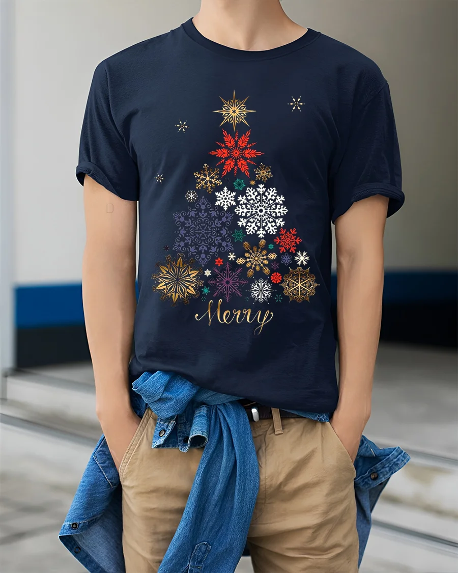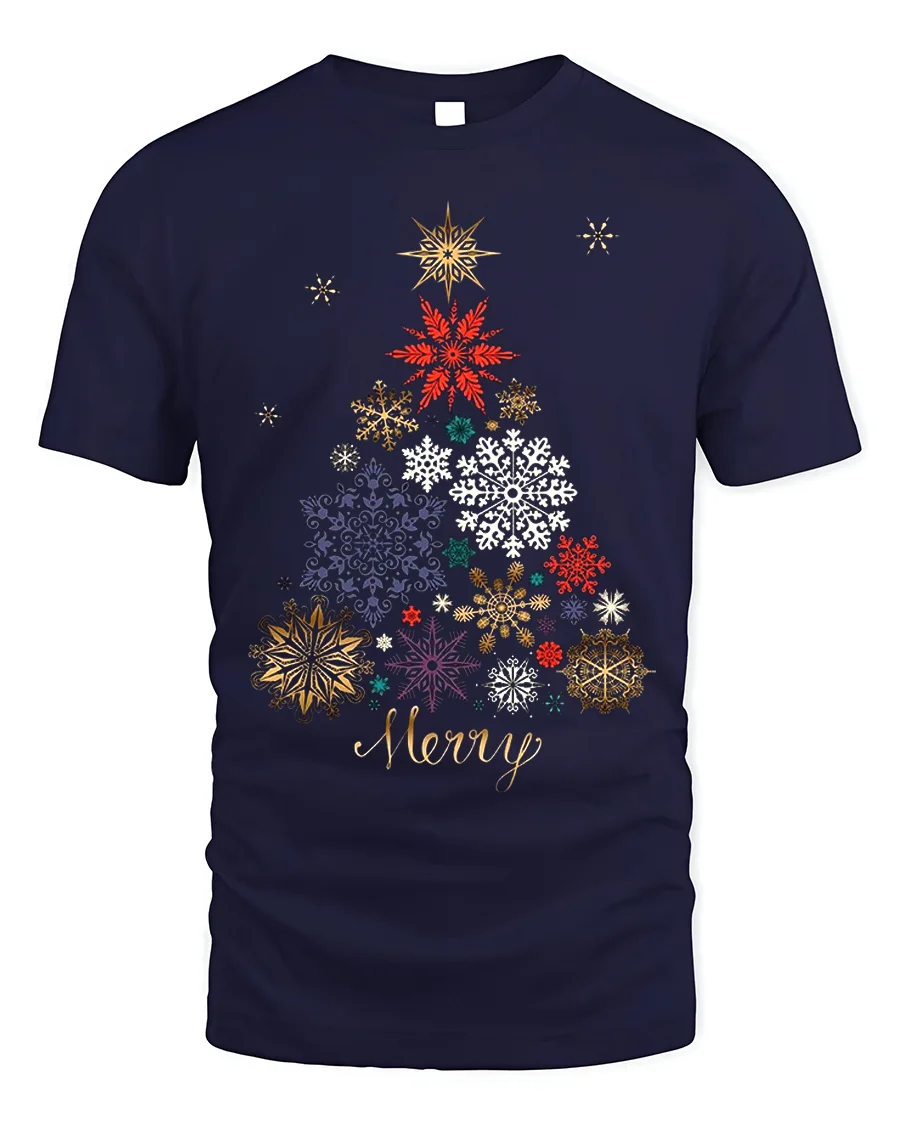 Home Halloween & Noel Elegant Snowflake Christmas Tree Stars Graphic T-Shirt
