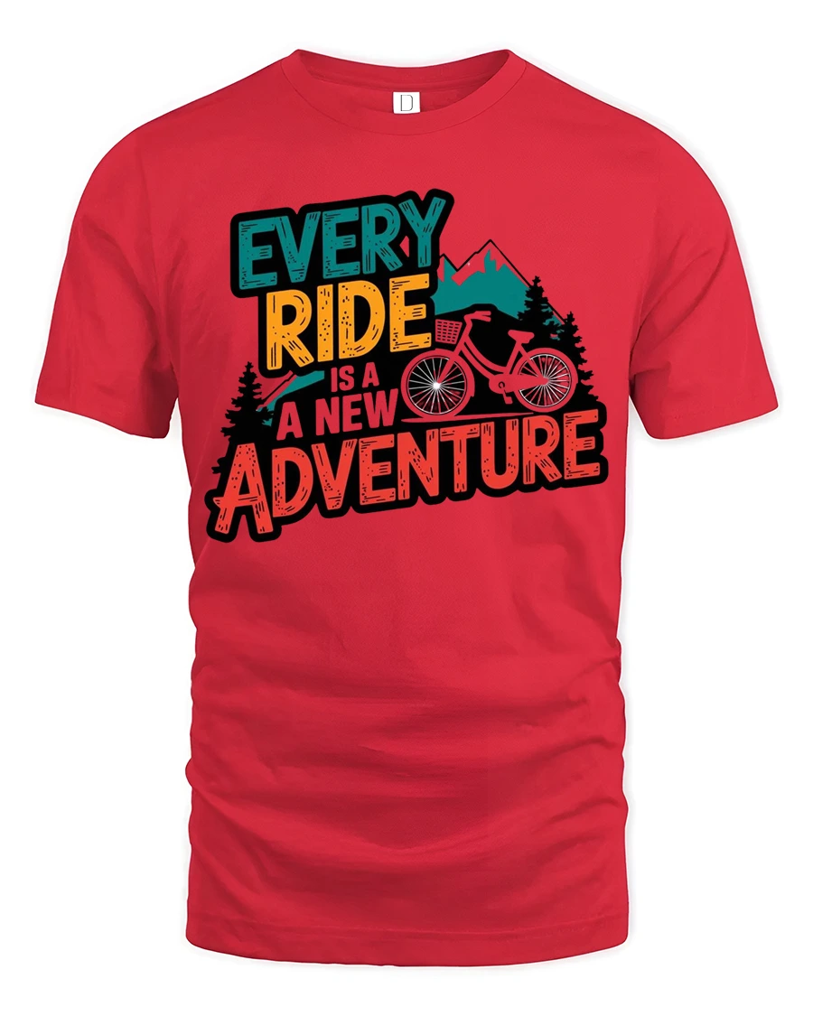 Every Ride Is A New Adventure Cycling Mountain Graphic Tee Tshirt - red t-shirt on white background