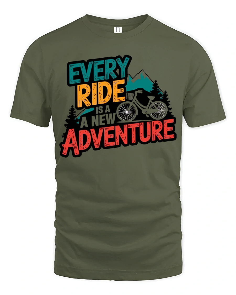 Every Ride Is A New Adventure Cycling Mountain Graphic Tee Tshirt - military green t-shirt on white background
