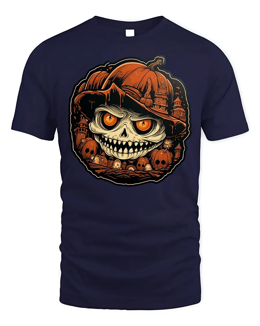 This Evil Pumpkin Skull Halloween Horror Tshirt Style is the perfect choice for those who love dark and spooky Halloween designs. Featuring a sinister skull with glowing pumpkin eyes and a haunted backdrop, this tshirt delivers the ultimate horror vibe. The detailed artwork captures the eerie spirit of October nights, making it an excellent option for Halloween parties, haunted house visits, or casual wear during the spooky season.