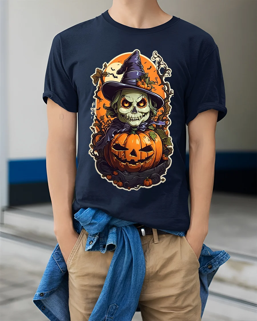 This Evil Witch Skull Pumpkin Halloween T-shirt is the perfect blend of spooky and gothic style, making it a standout piece for the Halloween season.