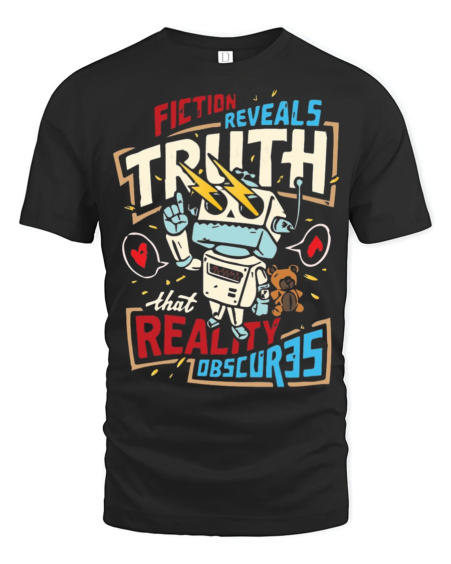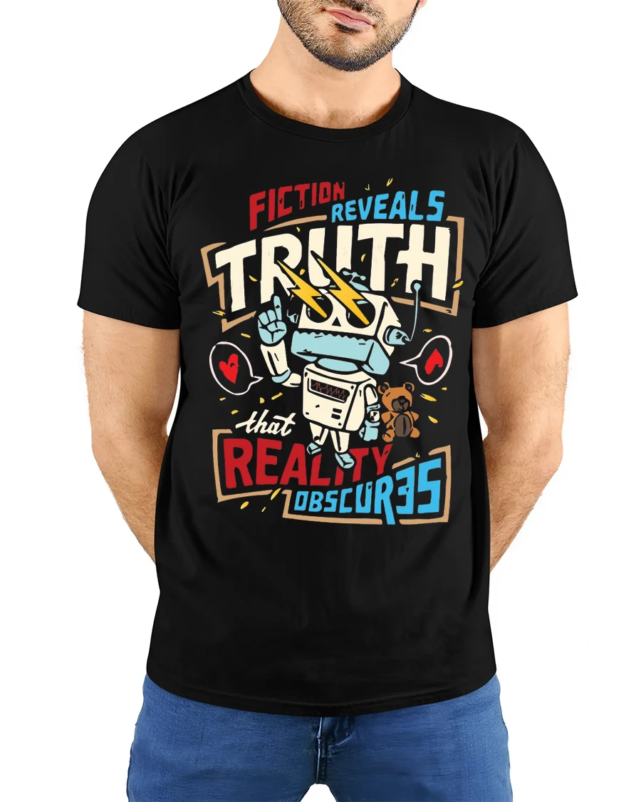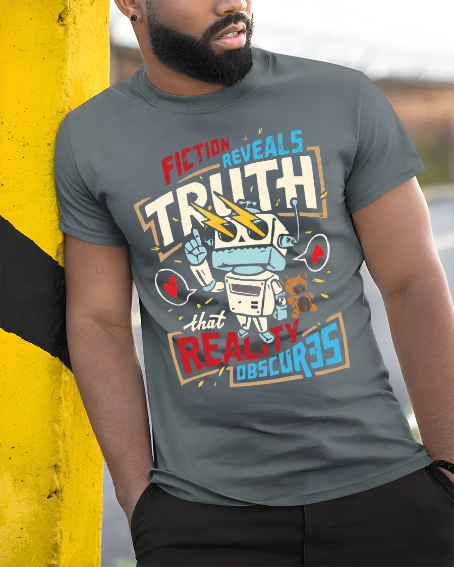 Fiction Reveals Truth Graphic T Shirt Retro Robot Philosophy Style combines meaningful expression with creative design in a bold visual statement.