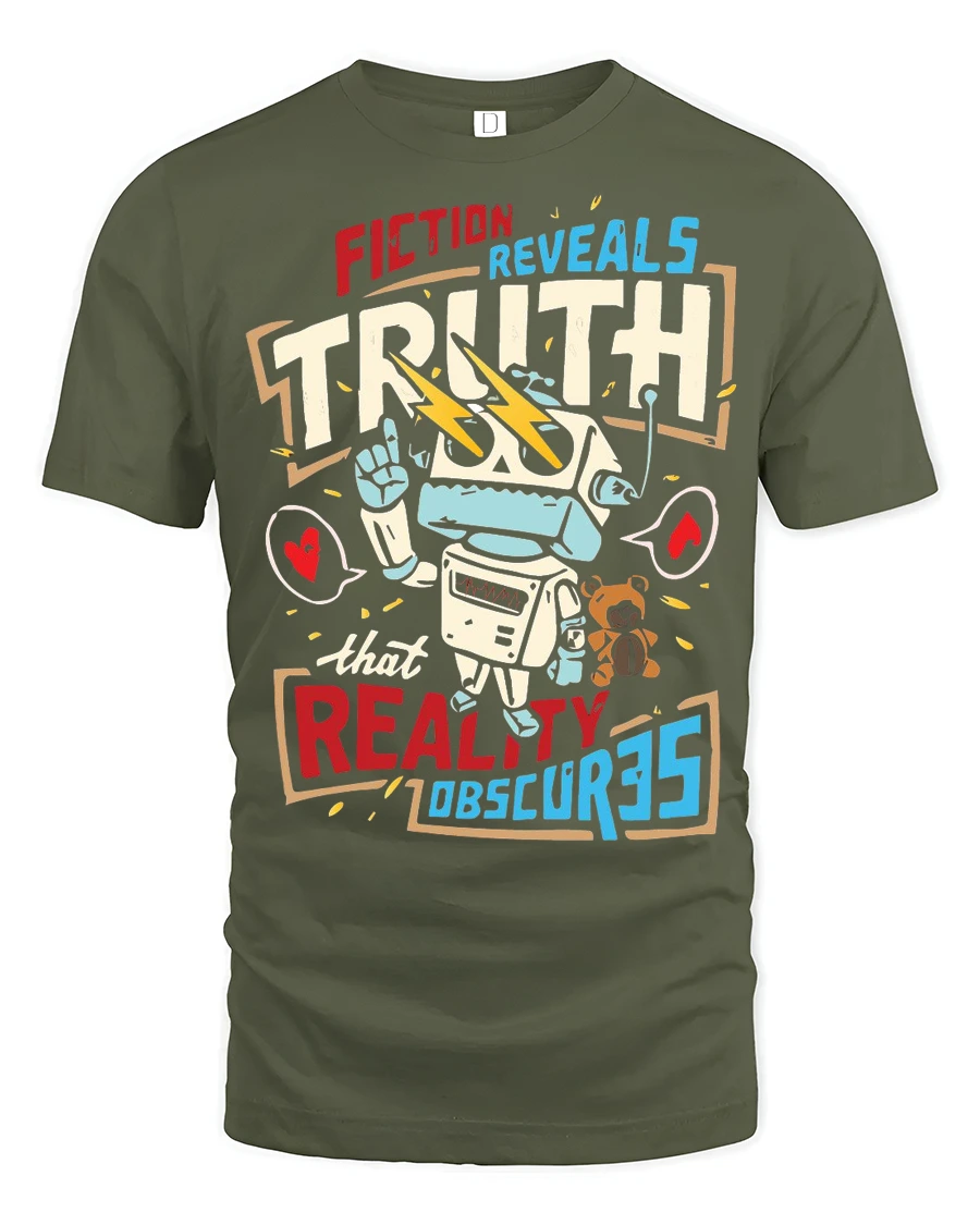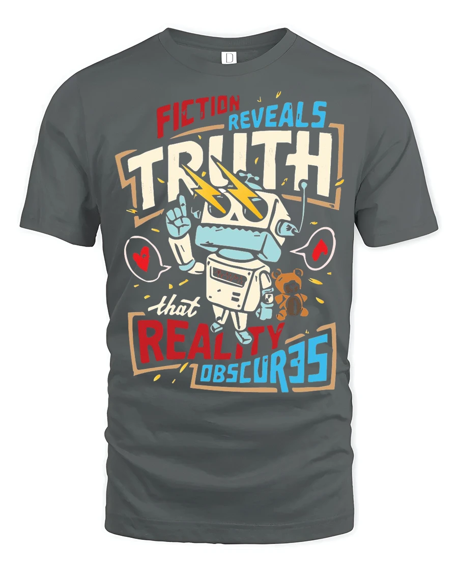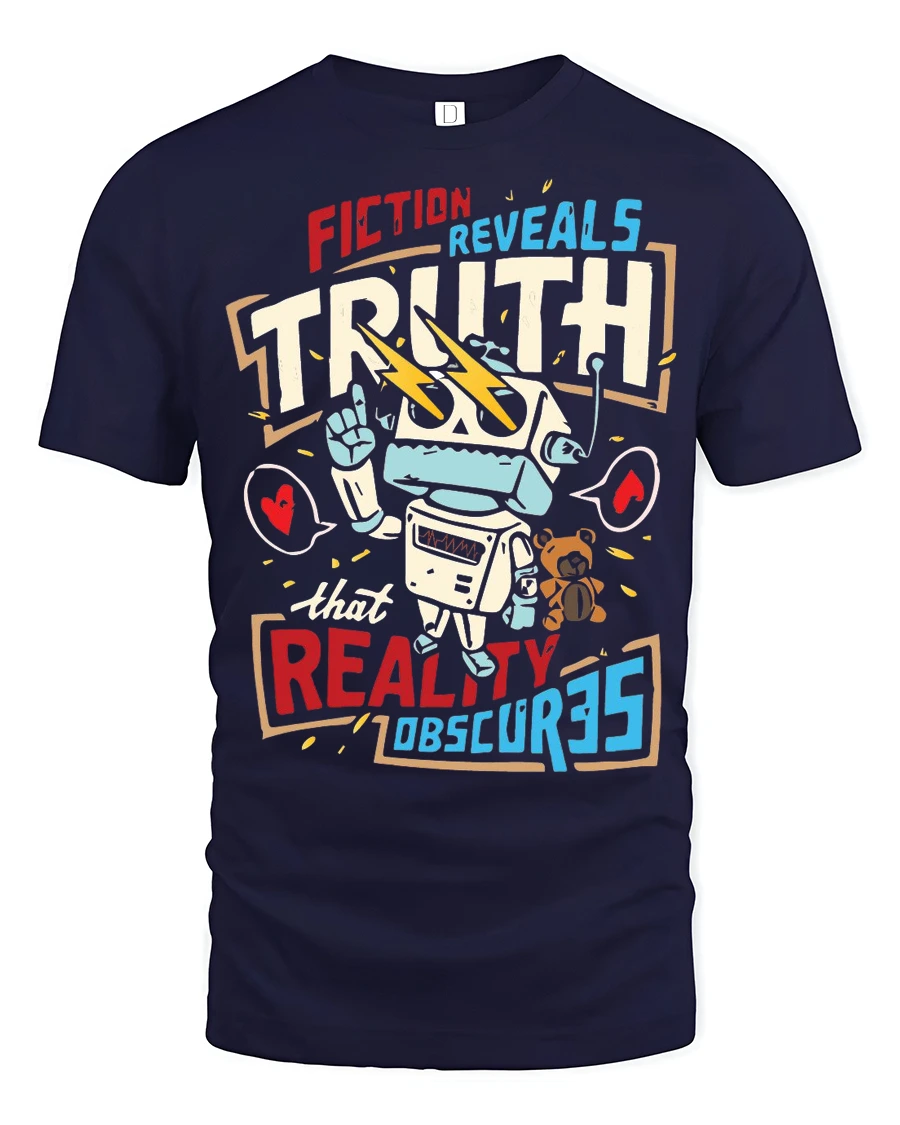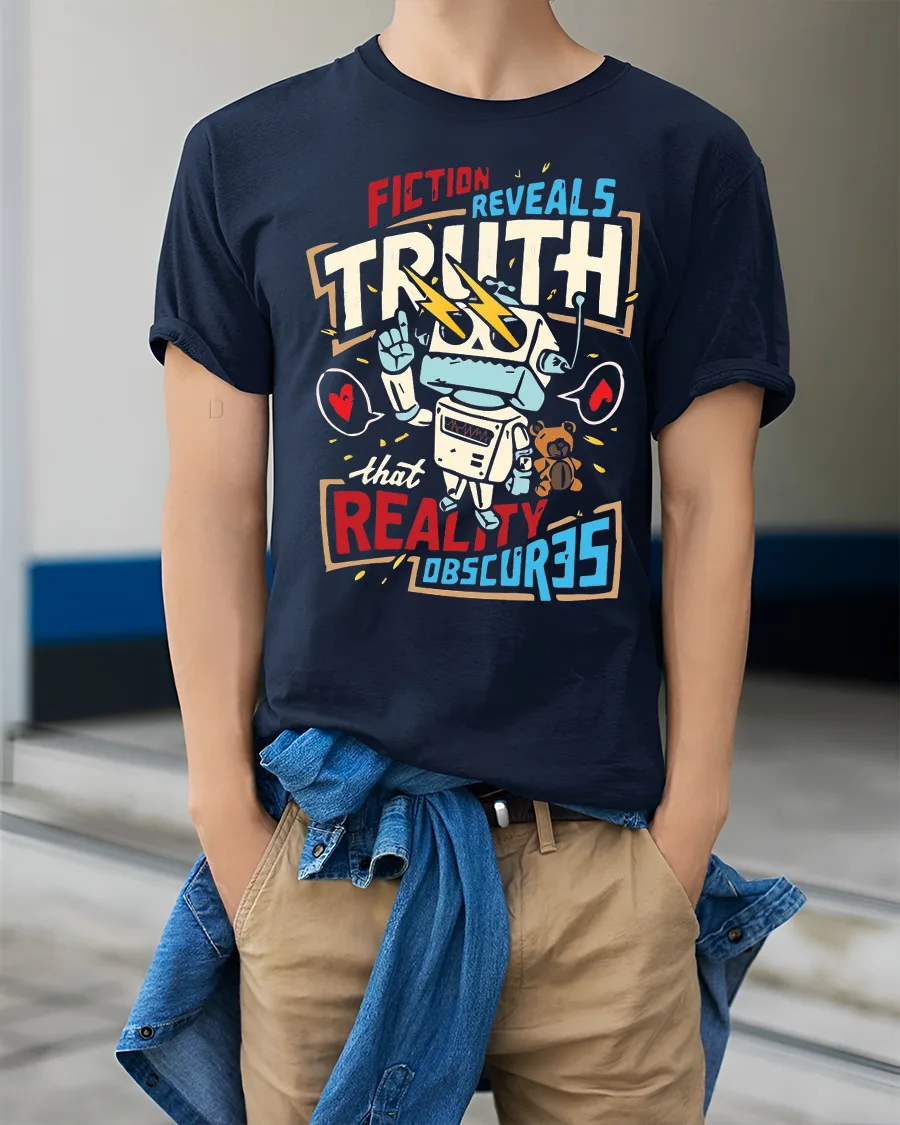 Fiction Reveals Truth Graphic T Shirt Retro Robot Philosophy Style combines meaningful expression with creative design in a bold visual statement.