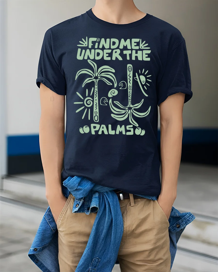 Find Me Under The Palms Funny Tropical Vacation Tee Tshirt brings a laid back island vibe that captures the spirit of sunny days and ocean breezes.