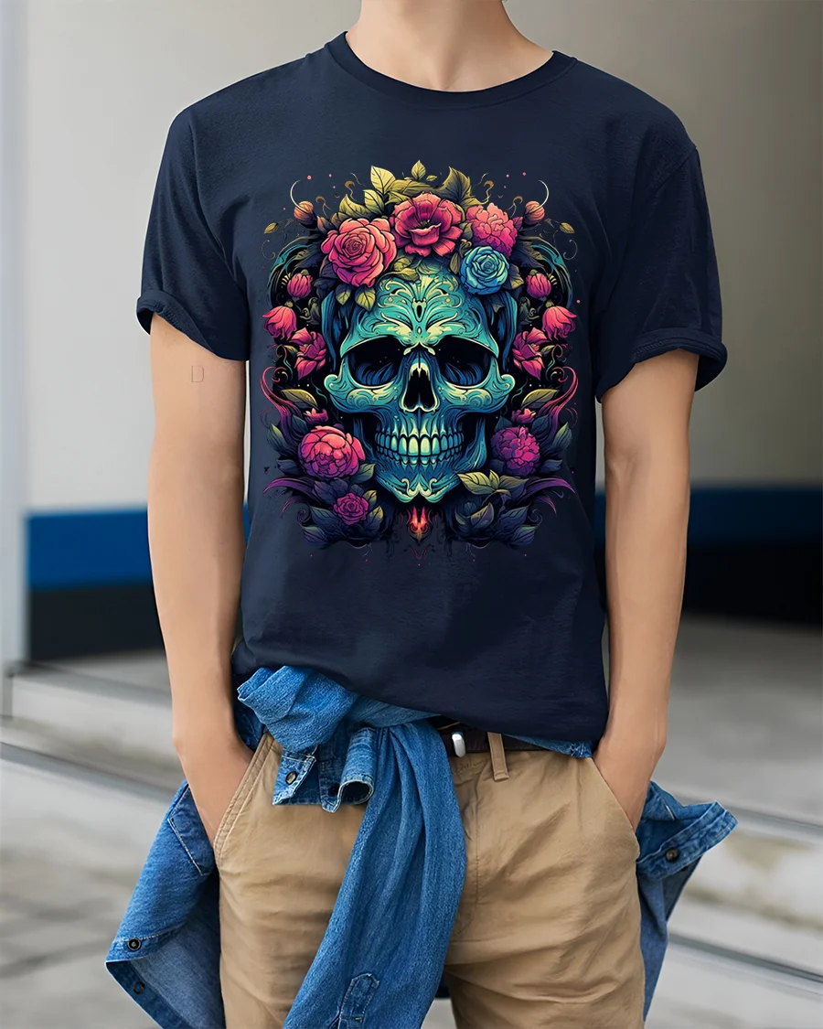 Celebrate creativity, culture, and individuality with the Floral Sugar Skull Rose Art Graphic T-Shirt. Whether you wear it for festivals, casual outings, or simply to express your unique personality, this t-shirt transforms art into fashion. A perfect choice for those who appreciate detailed design and bold self-expression.