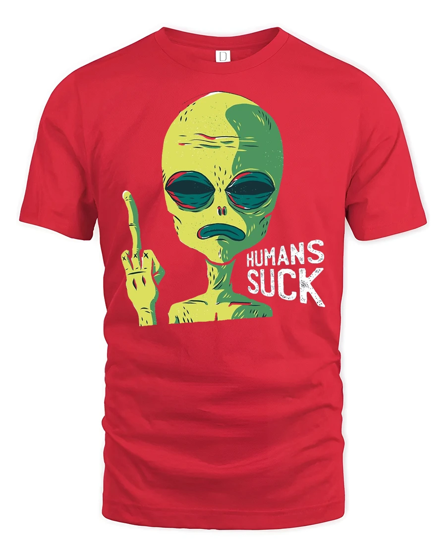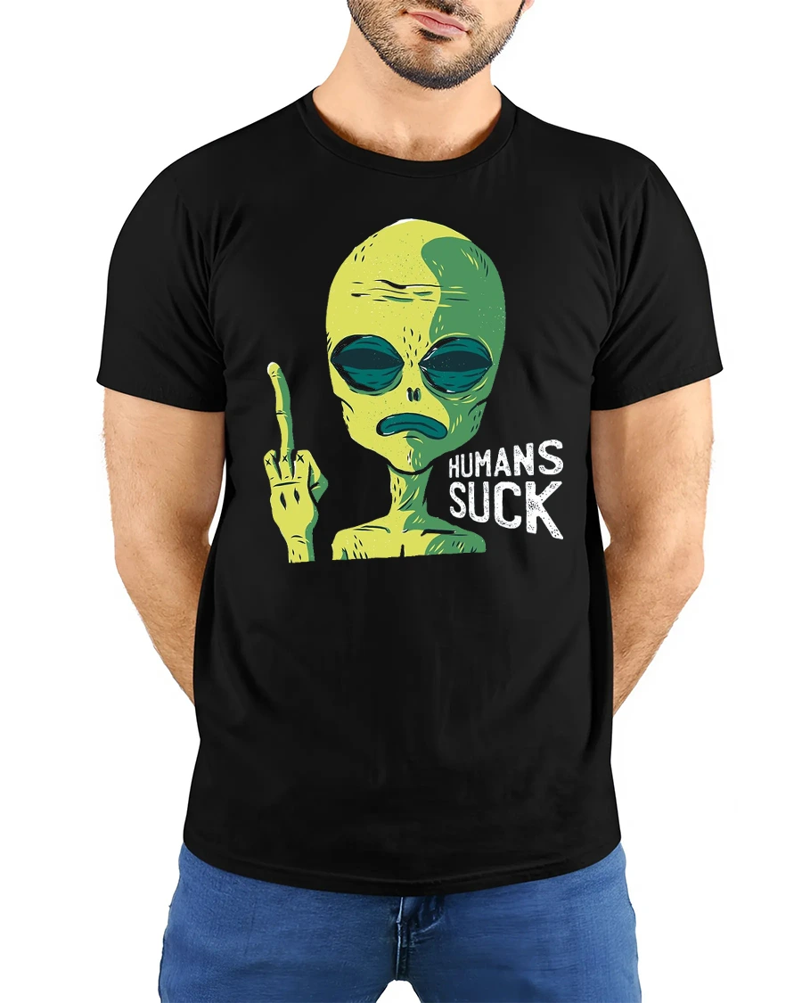 Funny Alien Humans Suck Graphic T Shirt Sarcastic Humor Tee