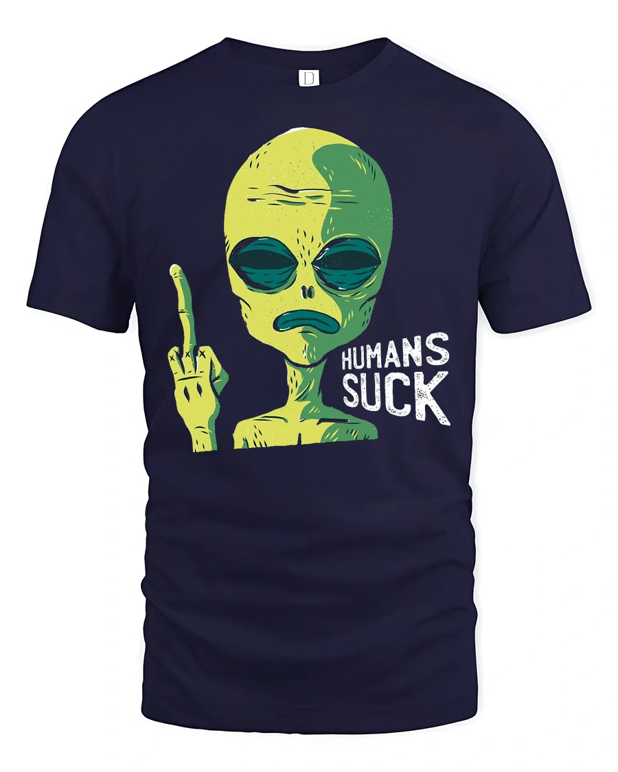Funny Alien Humans Suck Graphic T Shirt Sarcastic Humor Tee - navy t-shirt on white background