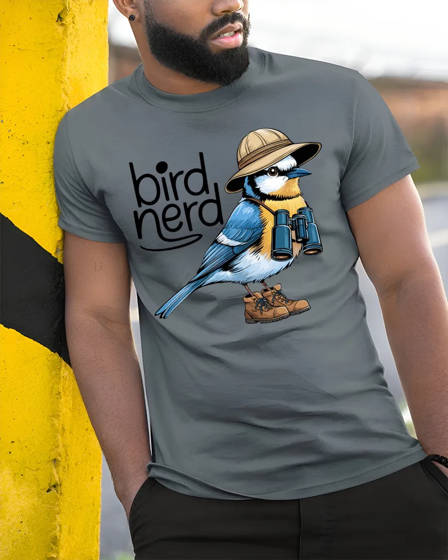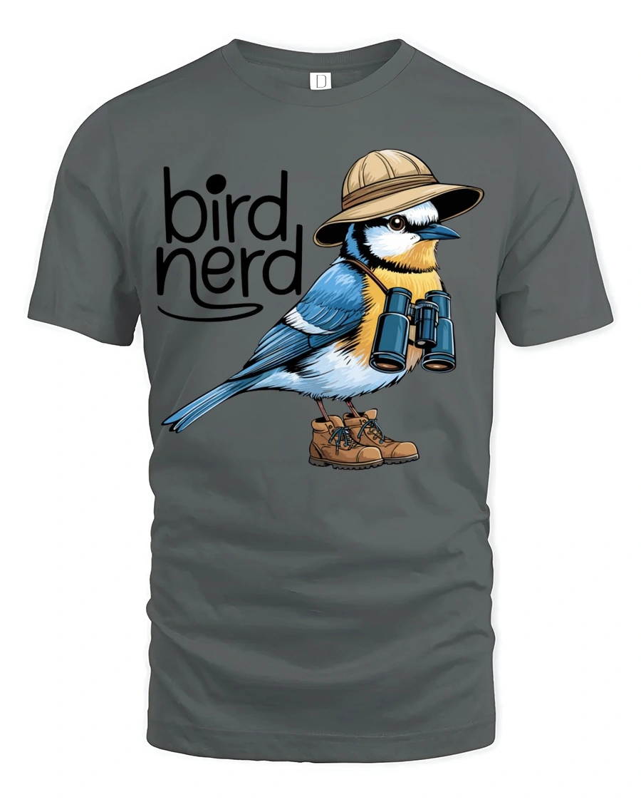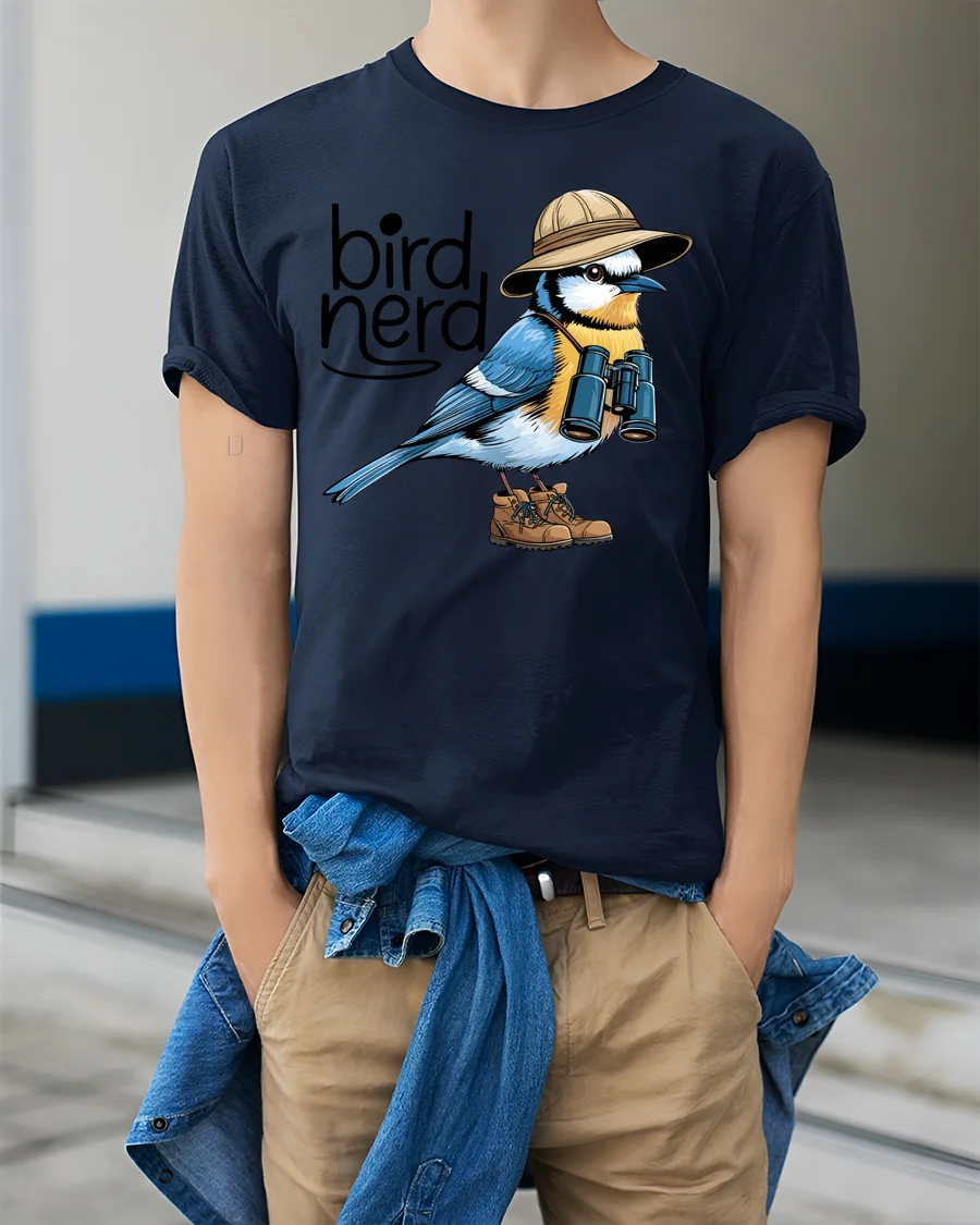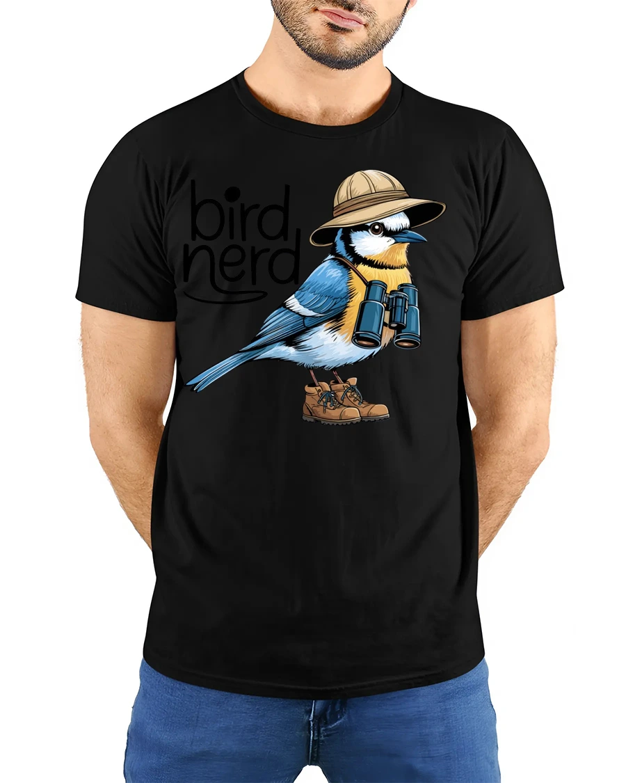 Inspired by birdwatching adventures curiosity and appreciation for wildlife this graphic tshirt expresses enthusiasm knowledge and lighthearted humor. The detailed illustration blends cute artistic style with outdoor exploration themes creating a balanced look that feels both fun and meaningful. Breathable lightweight material supports comfort throughout the day while the eye catching design pairs easily with relaxed fashion choices.