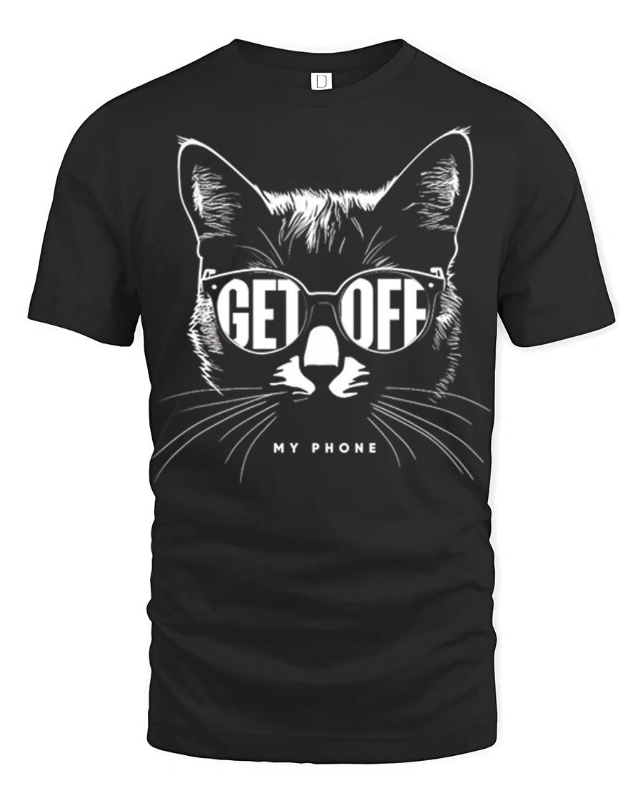 The Funny Cat Get Off My Phone Graphic T Shirt Cool Cat Humor brings playful sarcasm and feline attitude together in a stylish design.
