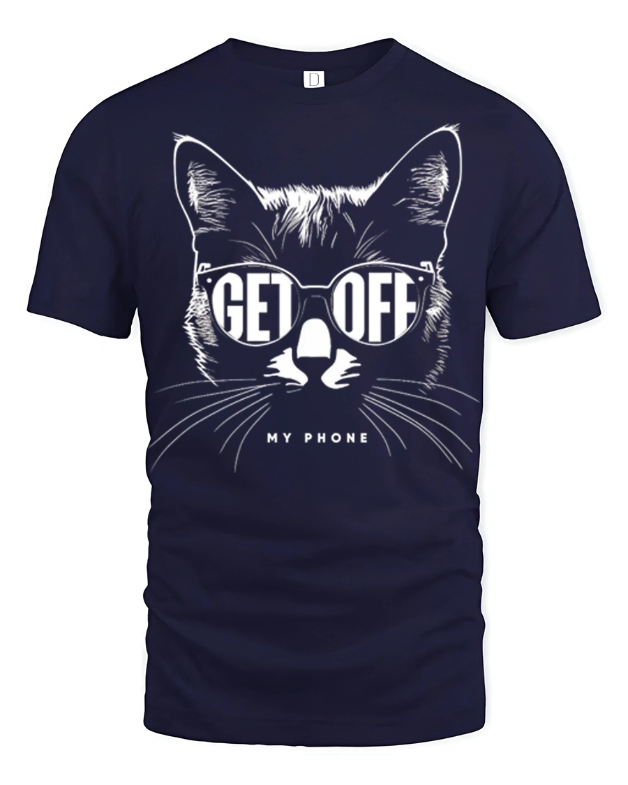 Funny Cat Get Off My Phone Graphic T Shirt Cool Cat Humor - navy t-shirt on white background