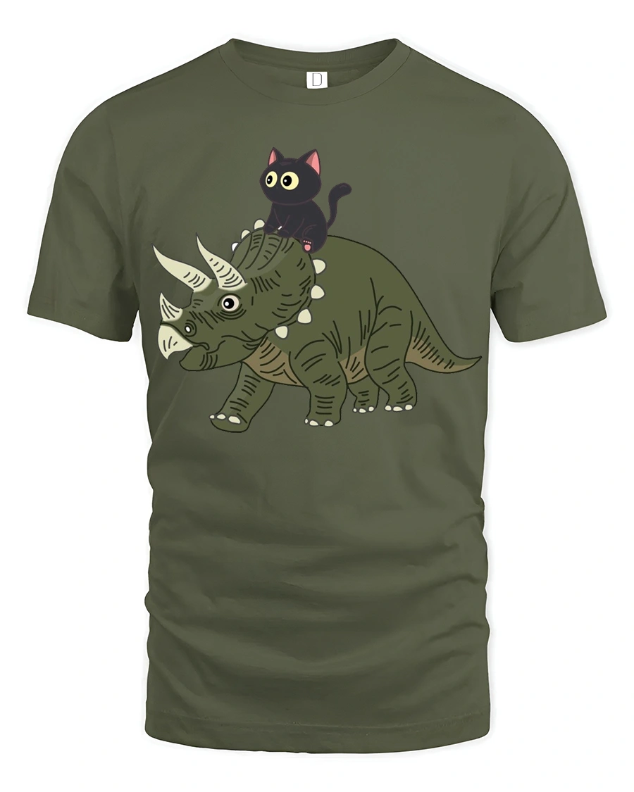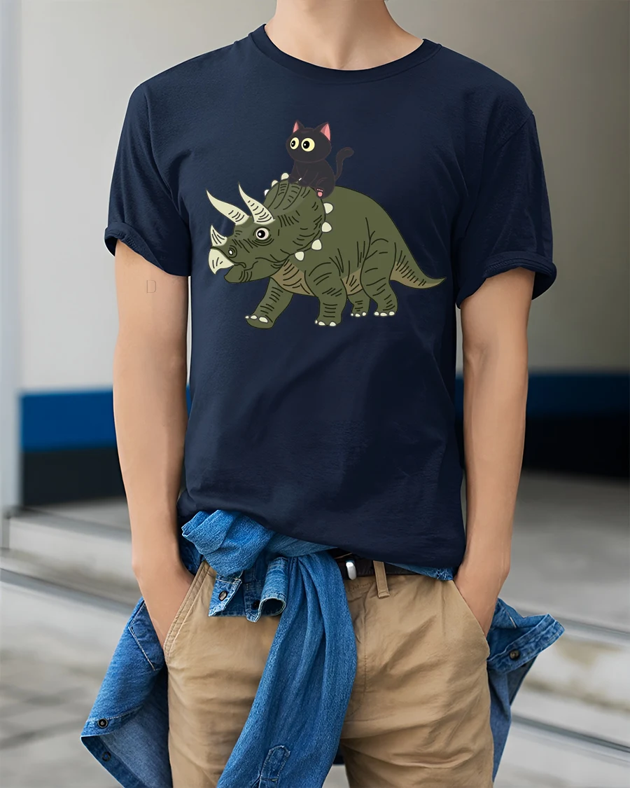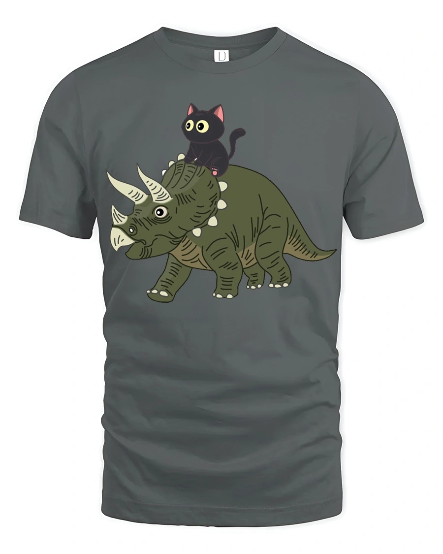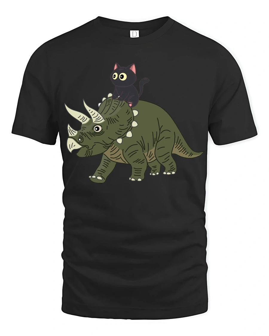 Funny Cat Riding Dinosaur Cute Cartoon Graphic Tee Tshirt brings a playful and imaginative design that instantly catches attention.