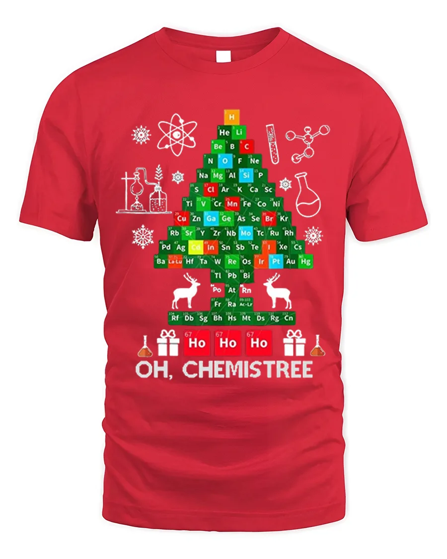 Celebrate the holidays with a clever twist wearing the Funny Chemistry Christmas Tree Science Oh Chemistree Tshirt. This creative design transforms the periodic table into a festive Christmas tree, complete with lab beakers, atoms, and reindeer for a geeky seasonal vibe. It’s the perfect mix of science humor and Christmas spirit for chemists, teachers, and anyone who loves nerdy jokes.