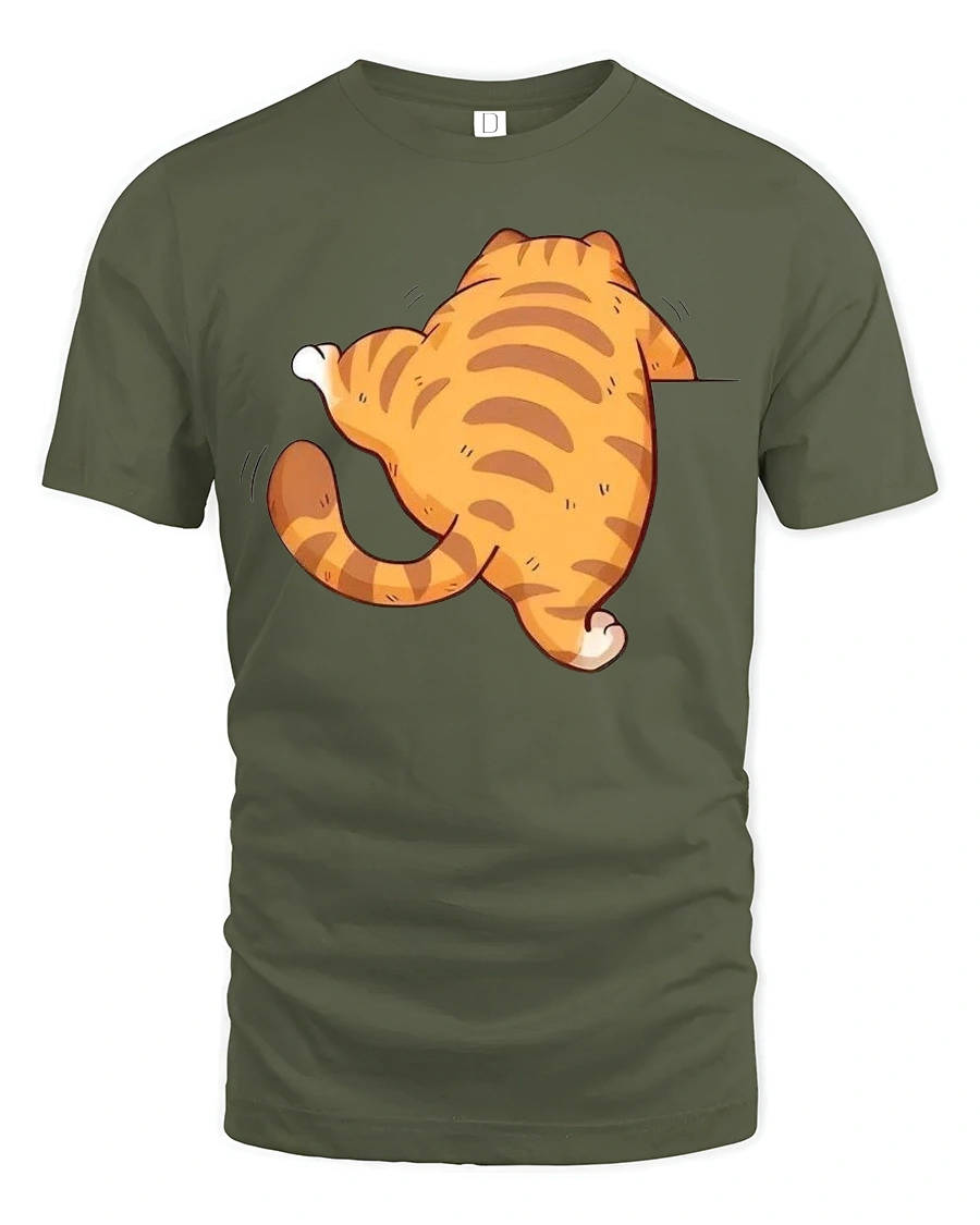 Funny Chubby Cat Butt Wiggle Cute Cartoon Graphic T Shirt - military green t-shirt on white background