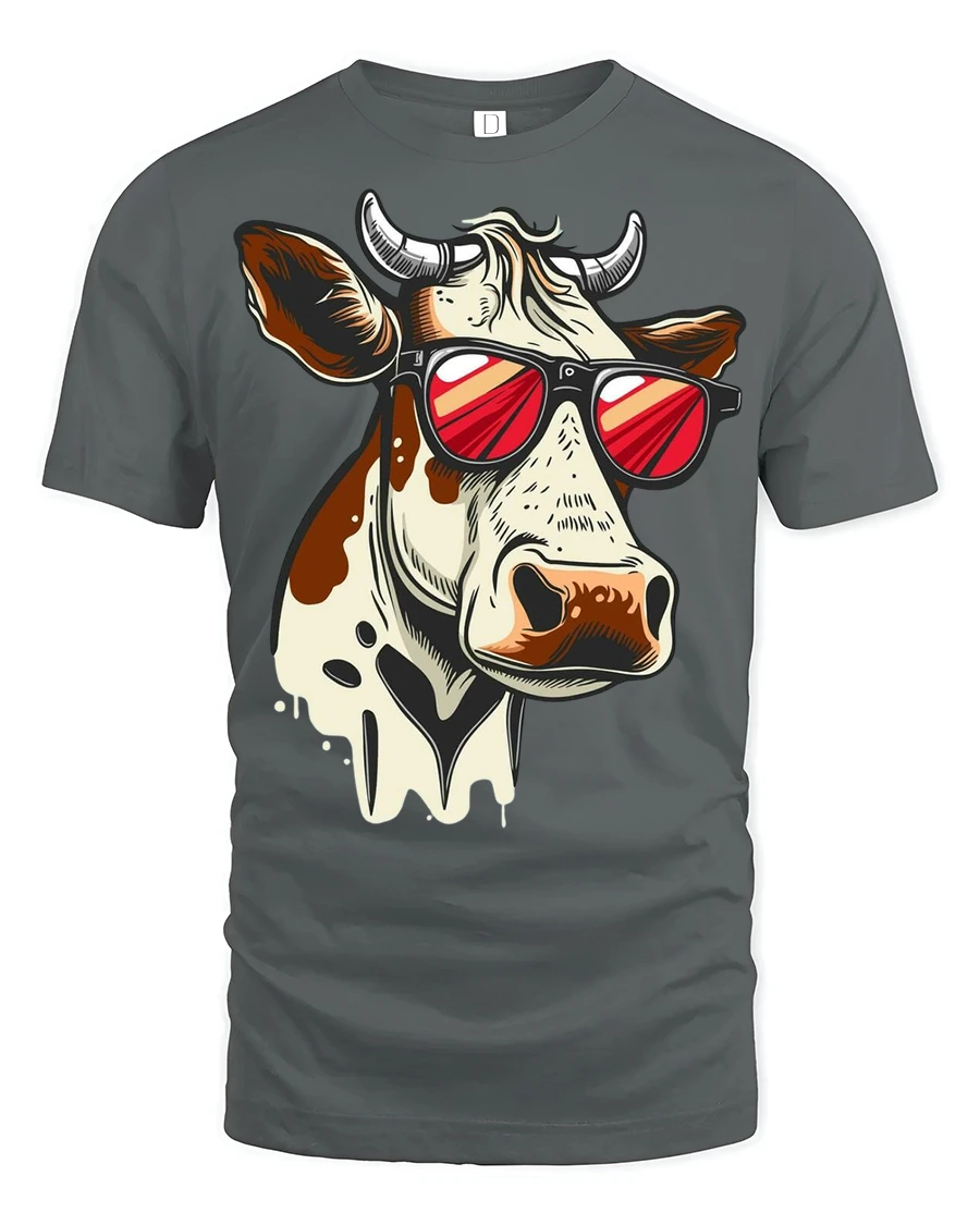 Funny Cool Cow With Sunglasses Graphic T Shirt Farm Humor Tee
