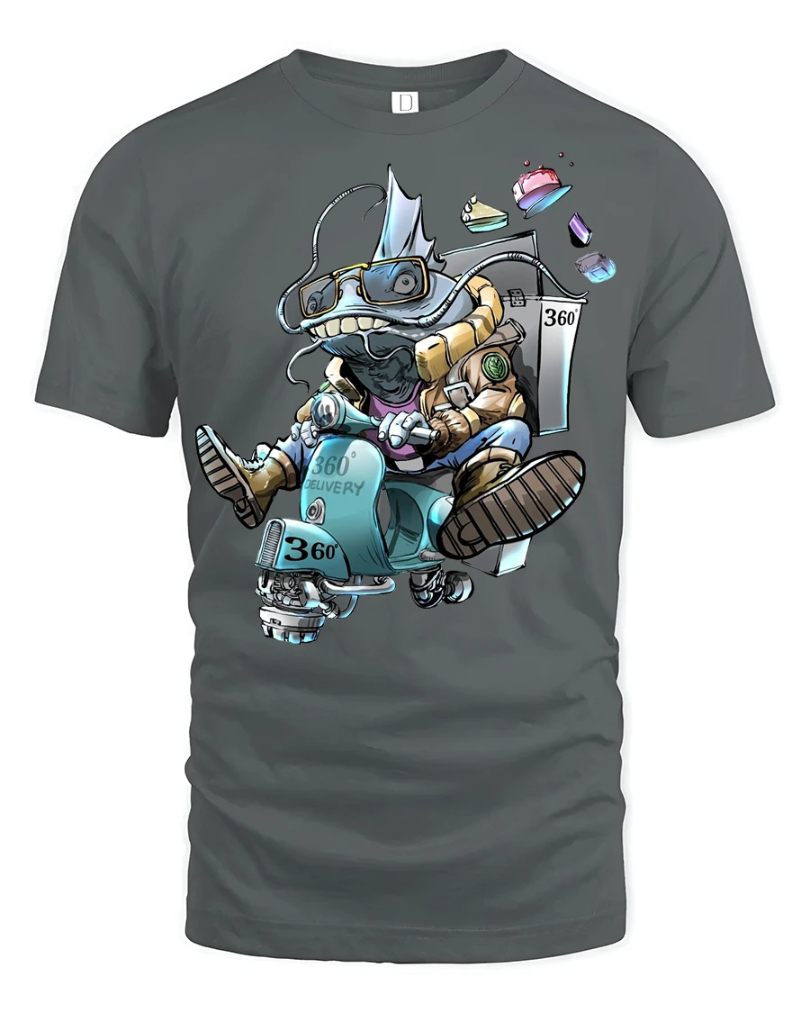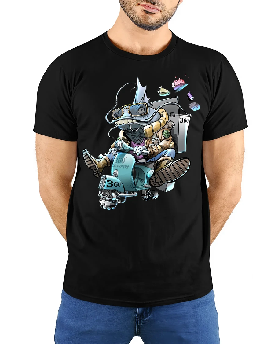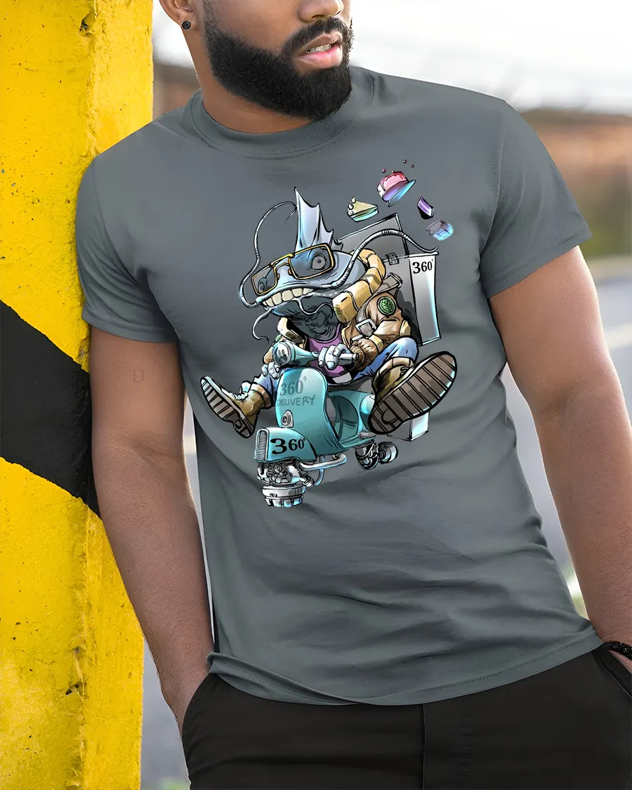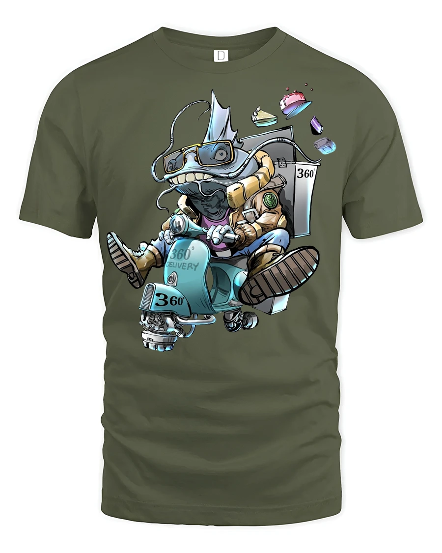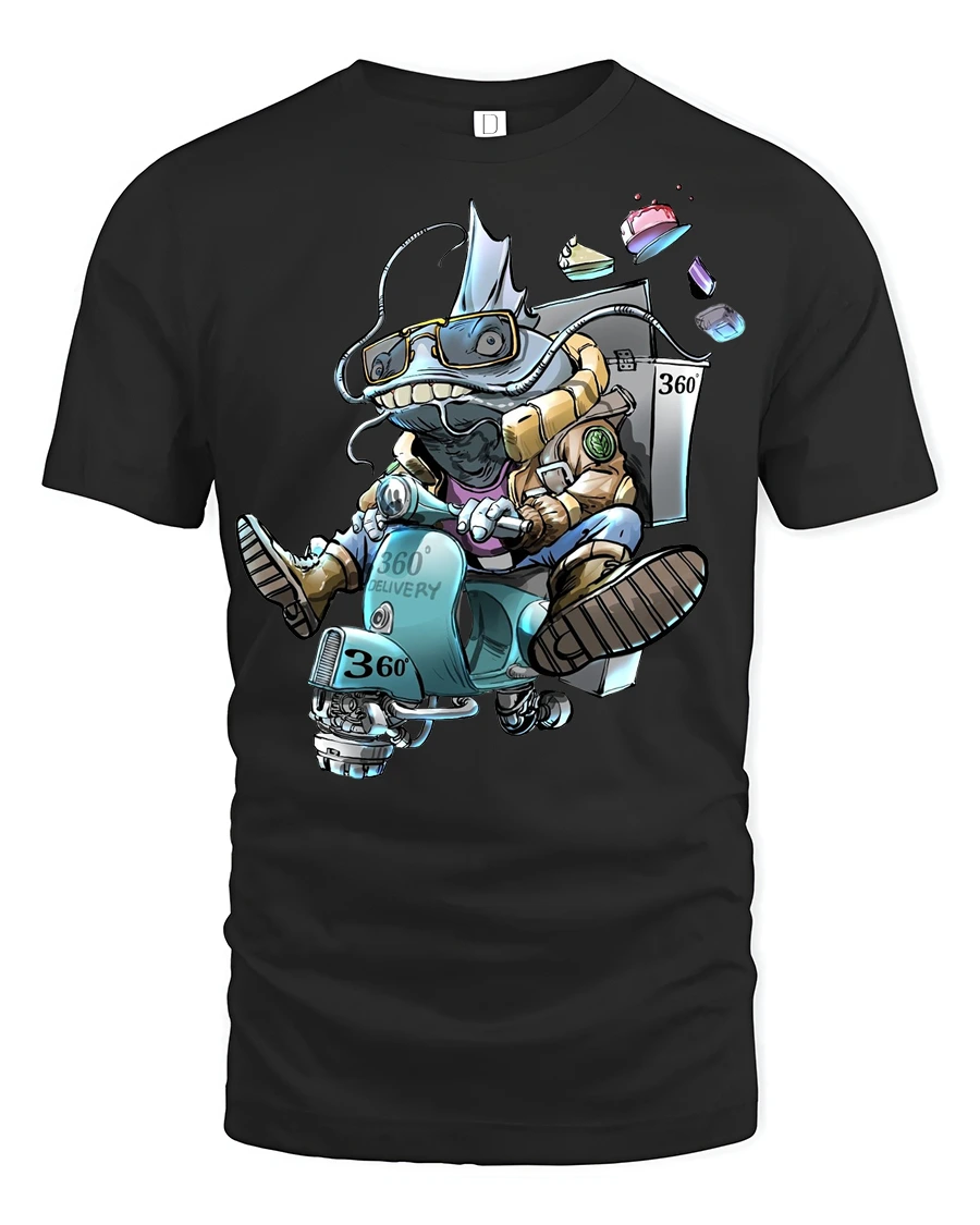 Funny Delivery Lizard Riding Scooter Cartoon Graphic T Shirt brings a playful and energetic vibe to your everyday style.
