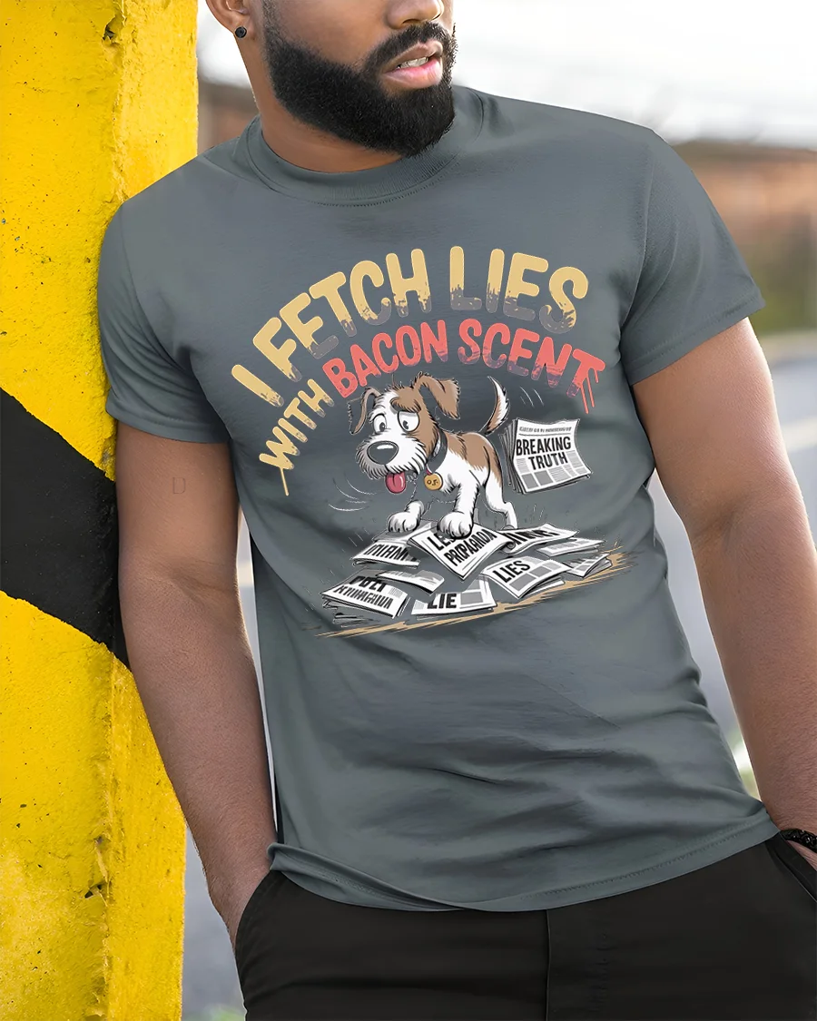 The Funny Dog I Fetch Lies With Bacon Scent T-Shirt also makes a fantastic gift for pet owners, bacon enthusiasts, or anyone who enjoys humorous graphic tees. Great for birthdays, holidays, or simply as a fun surprise, this tee blends humor, pets, and comfort into one stylish package. Show off your personality and love for dogs with this unique and funny graphic t-shirt.