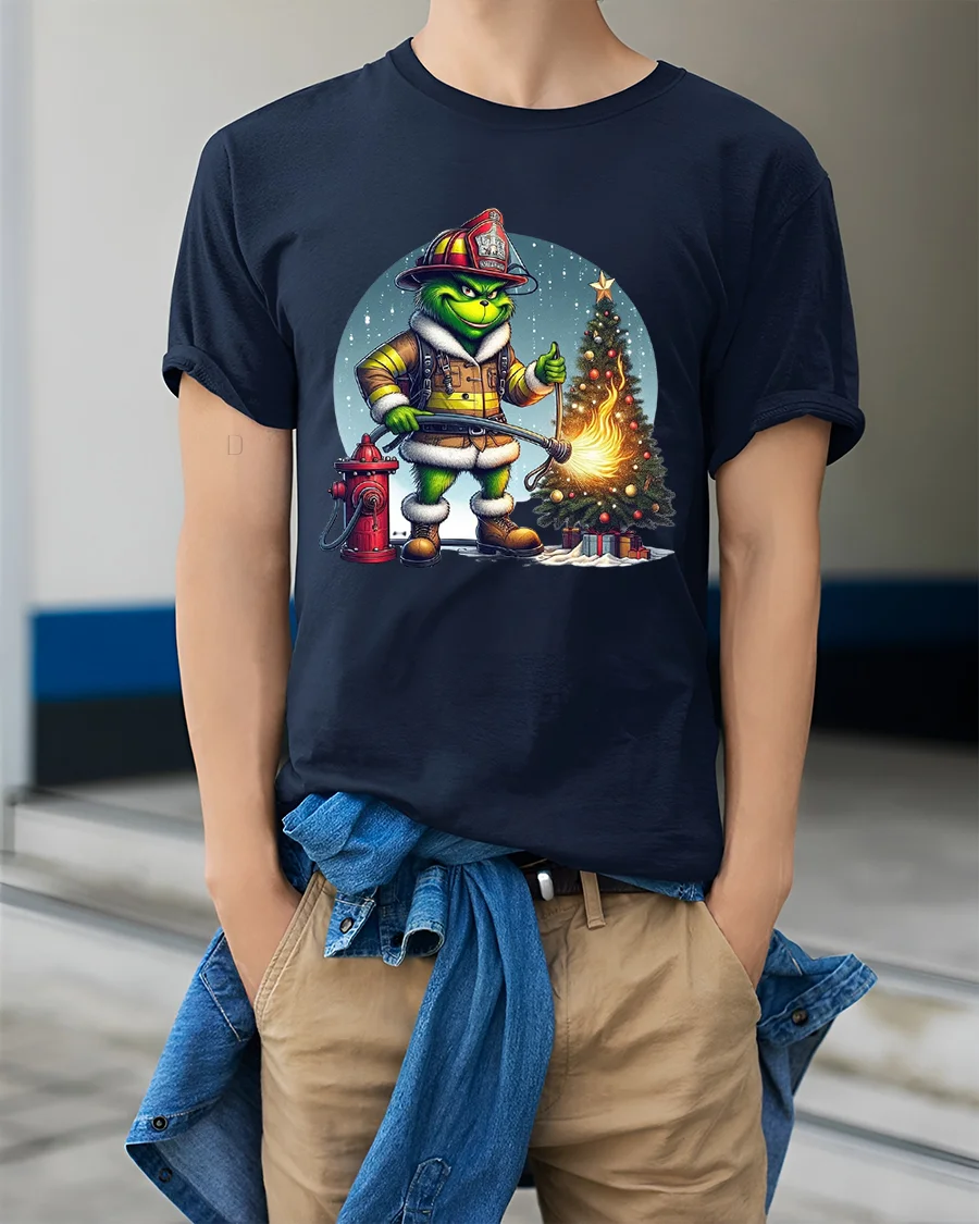 Crafted from soft, breathable fabric, the Funny Firefighter Grinch Christmas Tree Graphic T-Shirt delivers comfort and durability. The high-quality print ensures the design stays bold and colorful even after multiple washes, so you can enjoy wearing it for many holiday seasons. Perfect for Christmas parties, family gatherings, or simply spreading laughs during the holidays, this tee adds a fun and lighthearted touch to your festive style.