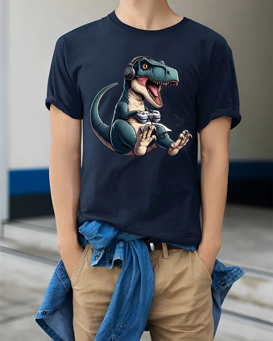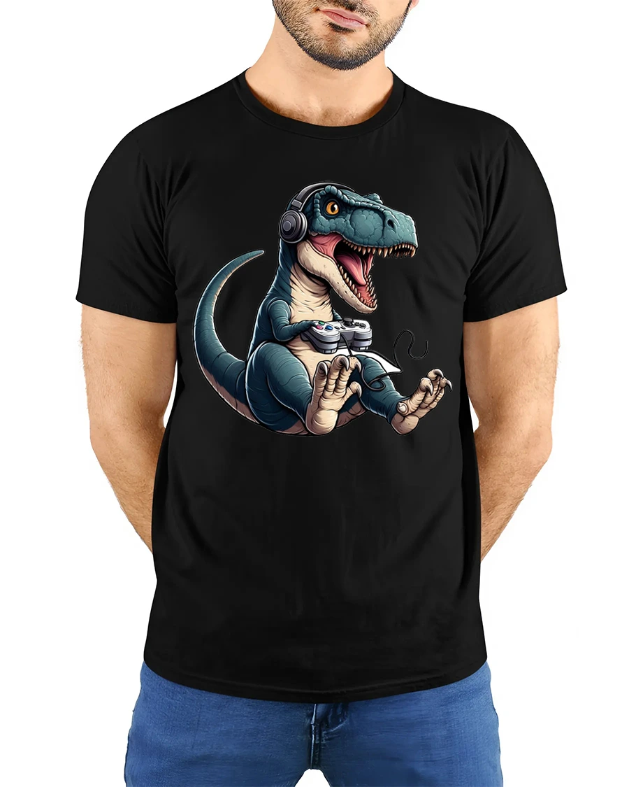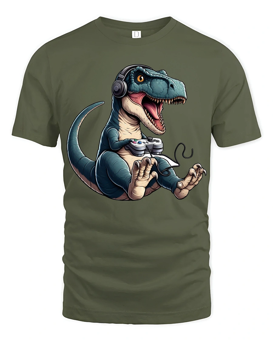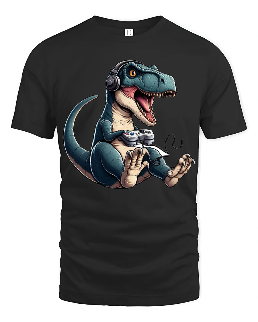 Soft comfortable fabric delivers a relaxed feel that works perfectly with everyday casual outfits. The detailed dinosaur gamer illustration adds personality and makes the design stand out with a fun geek culture vibe. This gaming themed dinosaur shirt blends humor, creativity, and gaming enthusiasm into a bold graphic tee that celebrates the joy of playing and the playful spirit of gamer culture.