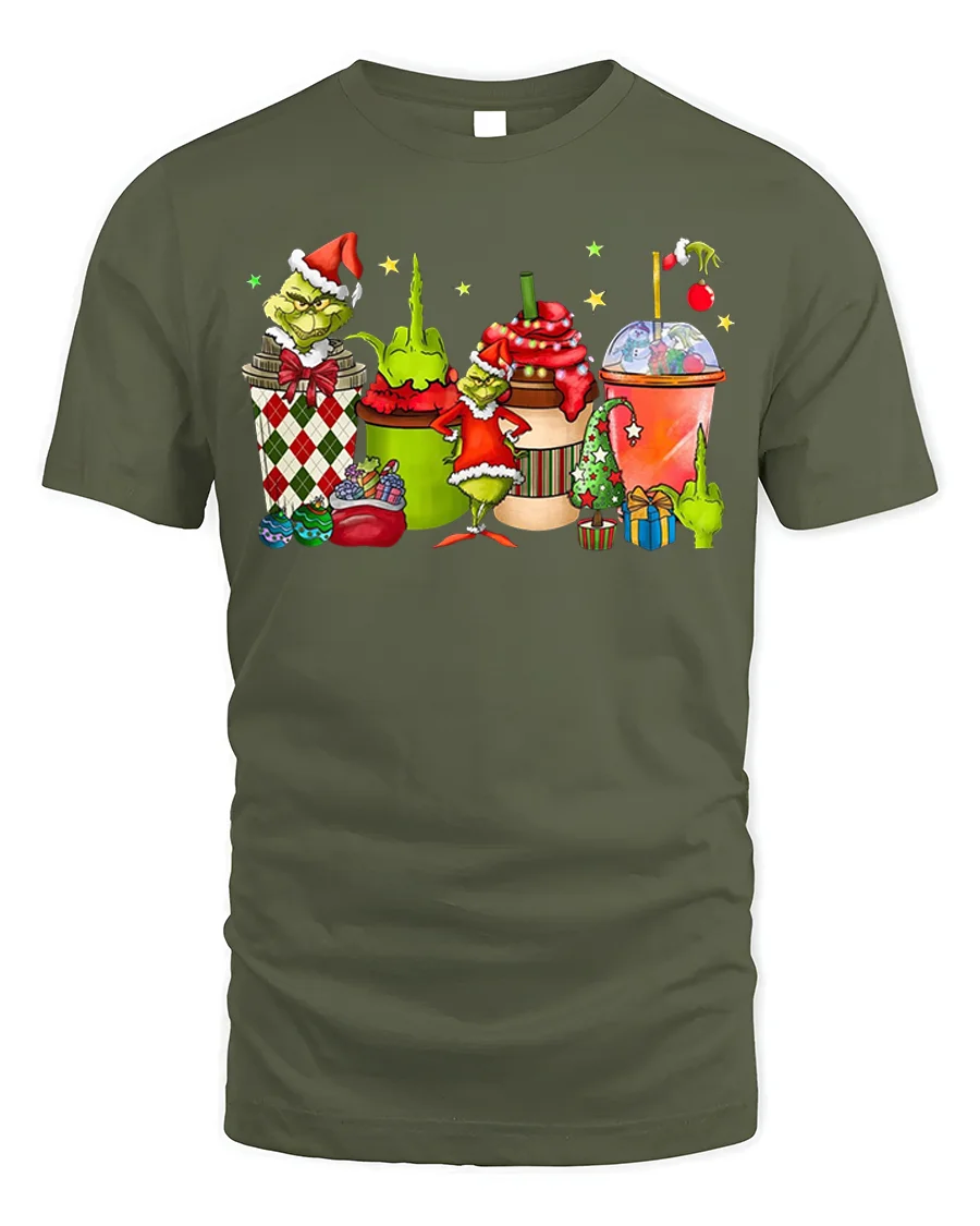 Sip your way into the holiday spirit with this Funny Green Christmas Drinks Santa Holiday Vibes T-Shirt. Featuring festive cups filled with colorful Christmas drinks and humorous green Santa-inspired characters, this design is perfect for coffee lovers and anyone who enjoys a funny twist on holiday cheer. It’s the ultimate shirt for cozy mornings, holiday parties, and laughter-filled gatherings.