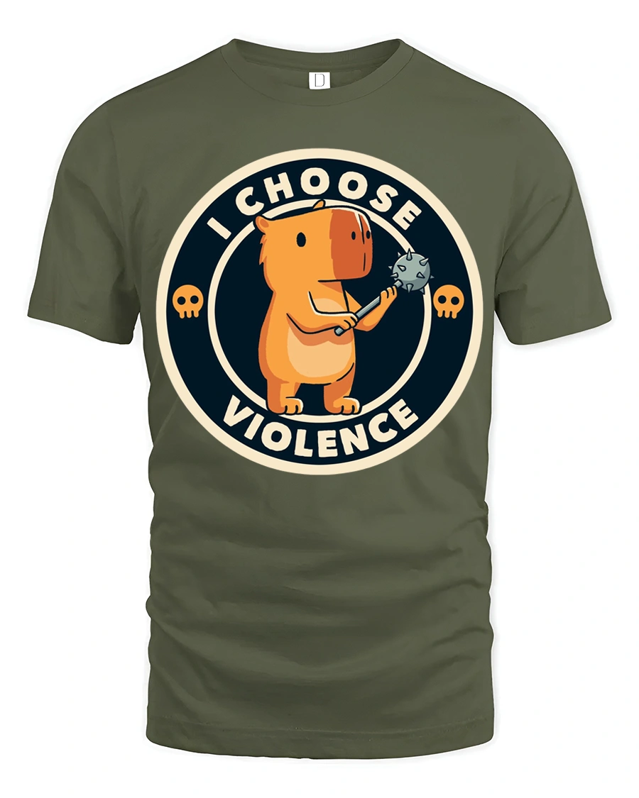 Funny I Choose Violence Cute Angry Capybara Graphic T Shirt - military green t-shirt on white background