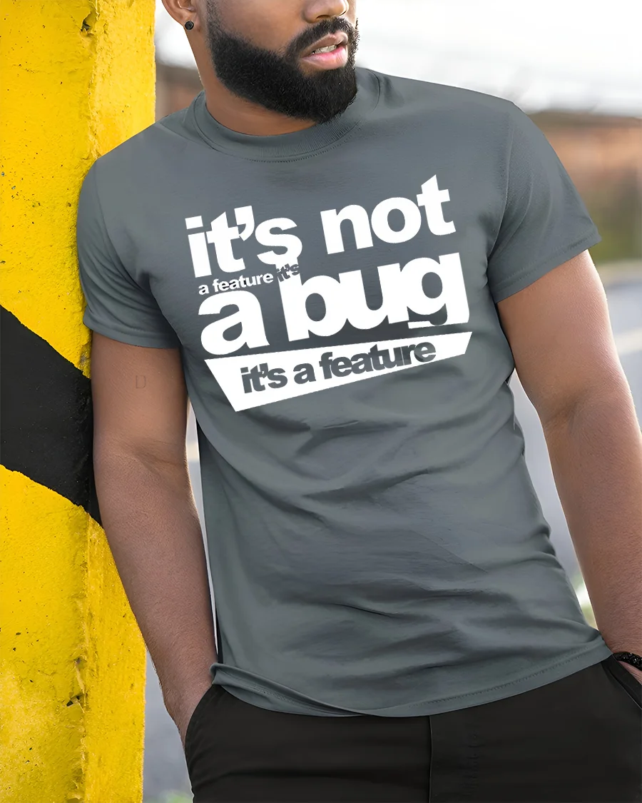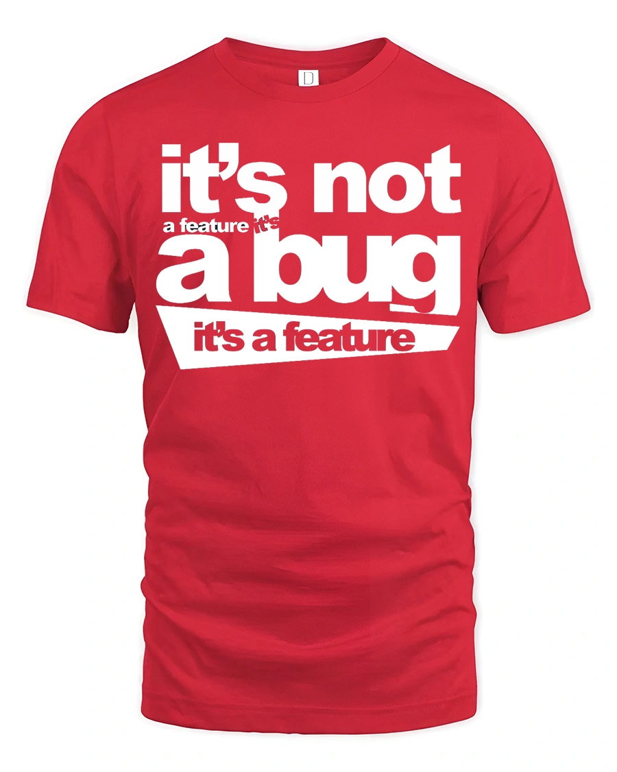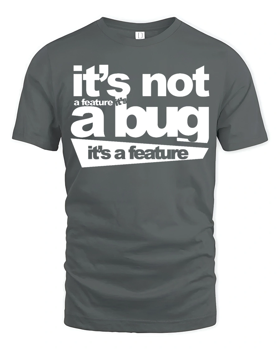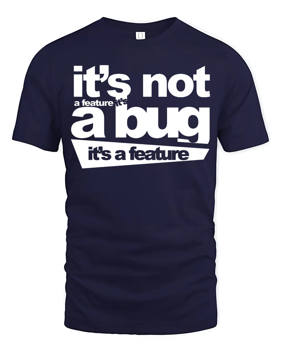 The its not a bug its a feature t shirt adds personality and humor to casual style while celebrating the clever jokes shared in developer culture. Its playful message creates a fun conversation starter and expresses appreciation for technology, coding creativity, and the humorous side of software development.