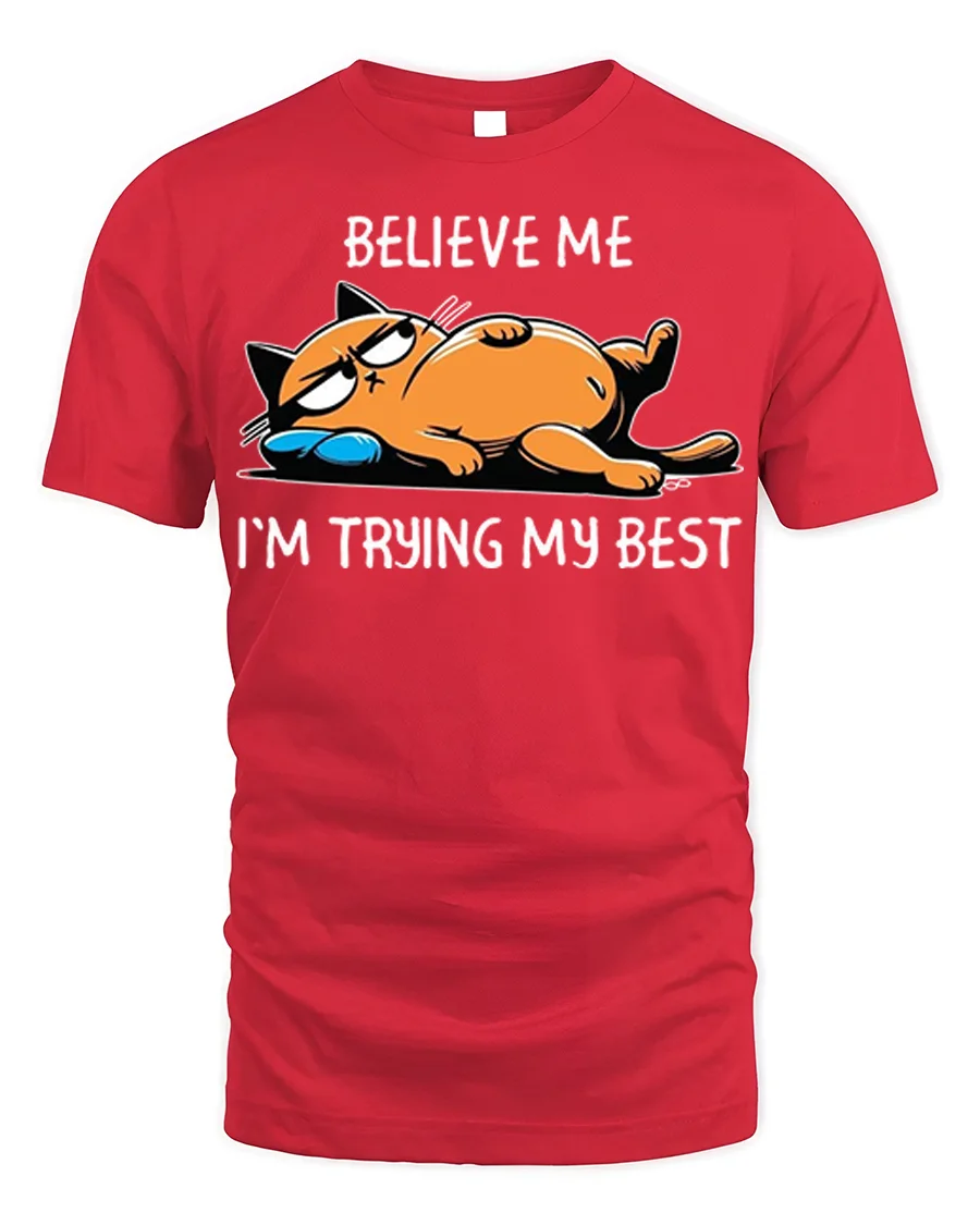 This novelty t-shirt also makes a great gift for cat lovers, humor enthusiasts, or anyone who enjoys sarcastic, funny designs. Pair it easily with jeans, joggers, or shorts for a relaxed yet expressive look. The Funny Lazy Cat Believe Me Trying My Best T-Shirt is not just a fashion piece—it’s a mood, a joke, and a conversation starter all in one.
