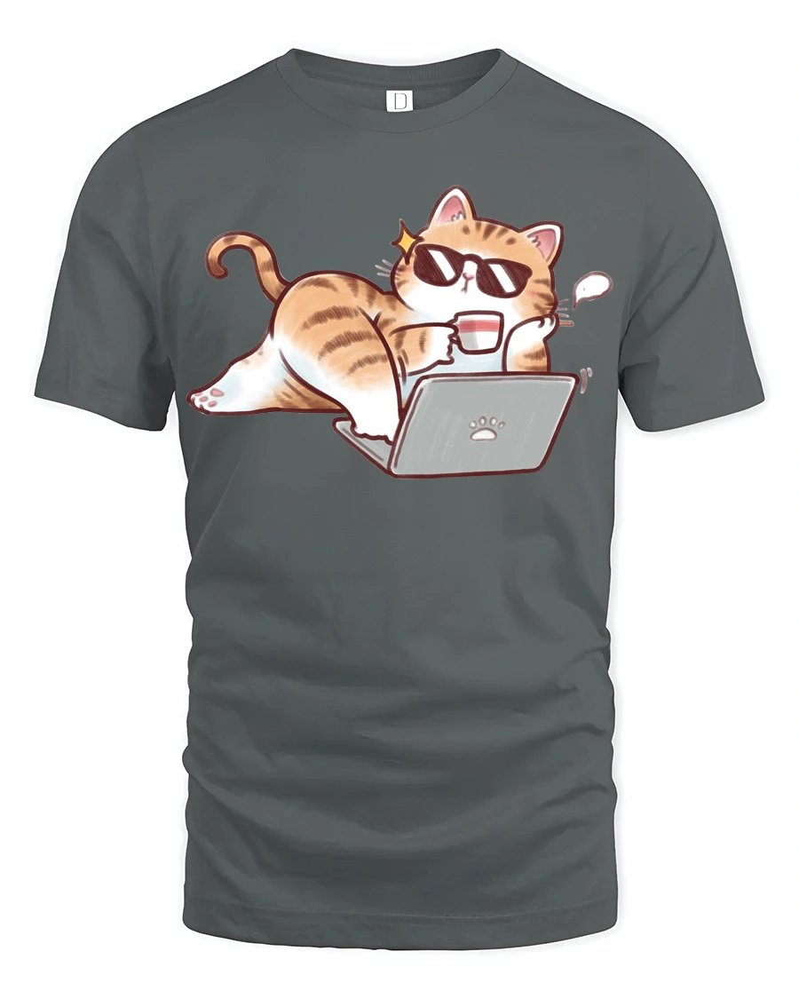 SKU: IMPD0904a19-1 Category: Lifestyle & Funny Tags: cartoon cat tee, cat lover graphic tee, chill cat graphic shirt, coffee cat tee, coffee lover cat tee, cute animal humor tshirt, cute cat cartoon tshirt, cute kitten tshirt, funny animal tshirt, funny cat tshirt, funny pet tshirt, humorous cat shirt, lazy cat graphic tee, relaxed cat laptop shirt, work from home shirt