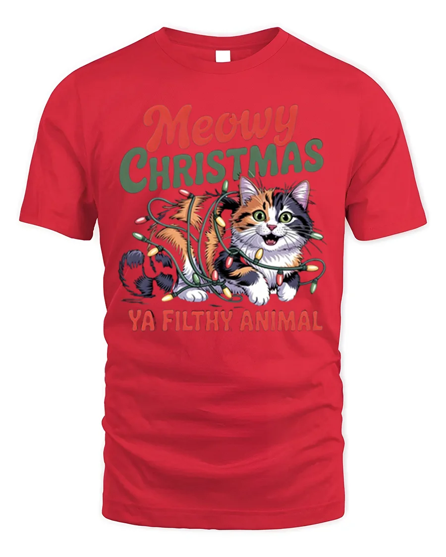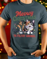 This Funny Meowy Christmas Cat T-Shirt with Holiday Lights Design also makes an excellent gift for cat owners, pet lovers, and anyone who enjoys a good laugh during the holidays. Perfect for Christmas parties, family photos, office celebrations, or casual winter wear, it spreads joy and humor wherever it’s worn. Celebrate the season with a smile and show off your feline holiday spirit with this hilarious Christmas cat tee.