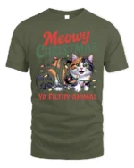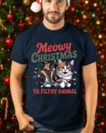 Our Funny Meowy Christmas Cat T-Shirt with Holiday Lights Design brings festive humor and adorable charm together in the perfect holiday tee. Featuring a playful cat tangled in colorful Christmas lights and a bold, humorous message, this design captures the mischievous spirit every cat lover knows well. The bright artwork and fun holiday theme make it a standout piece for the Christmas season.