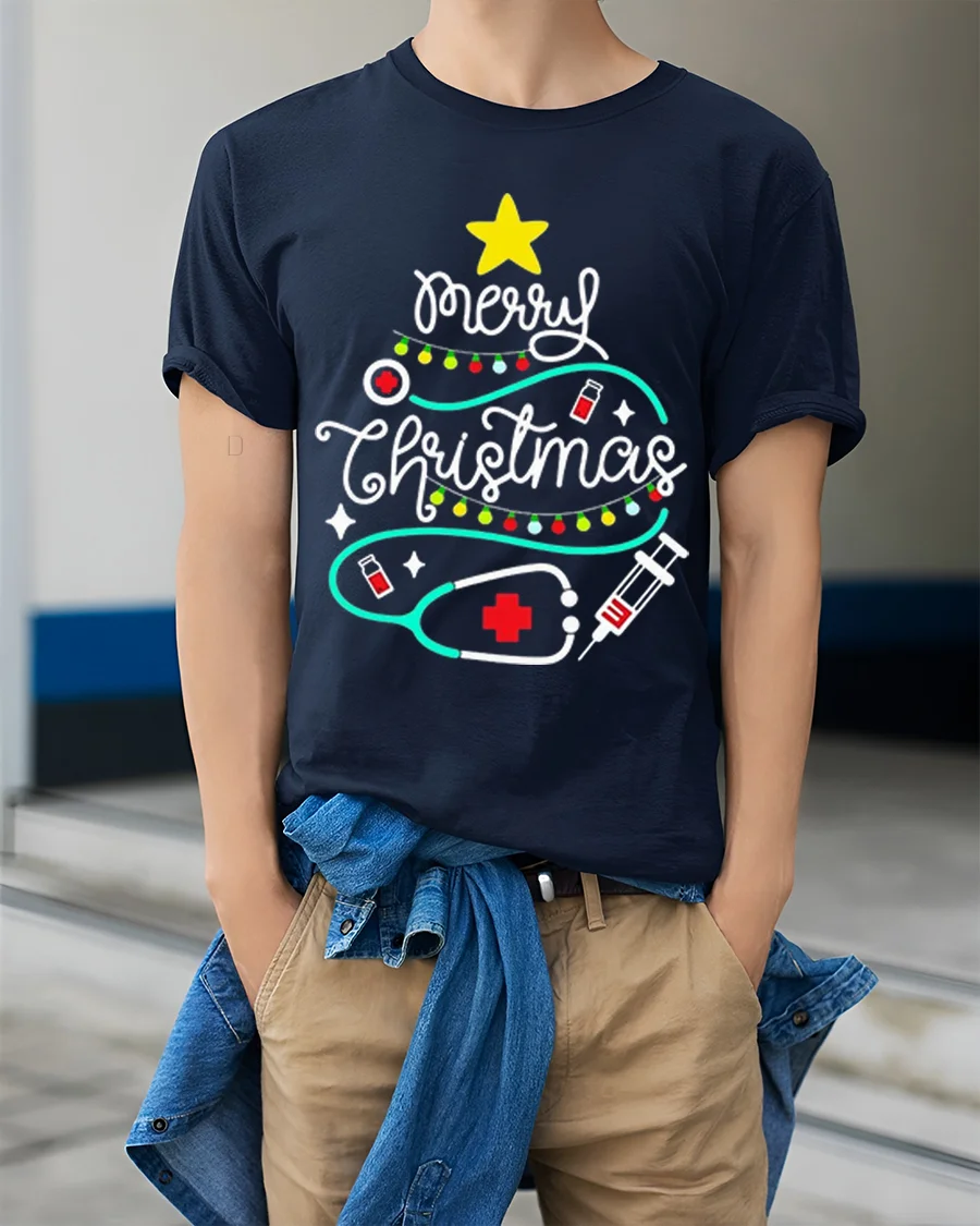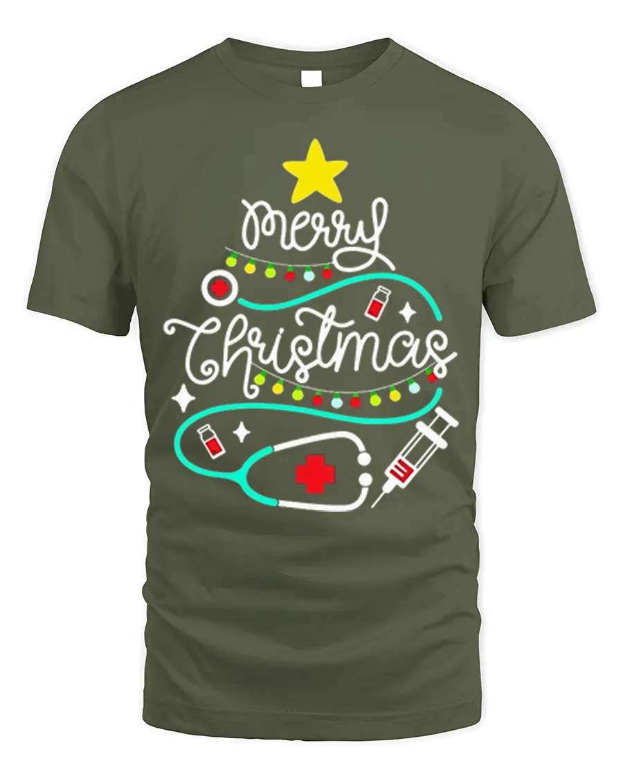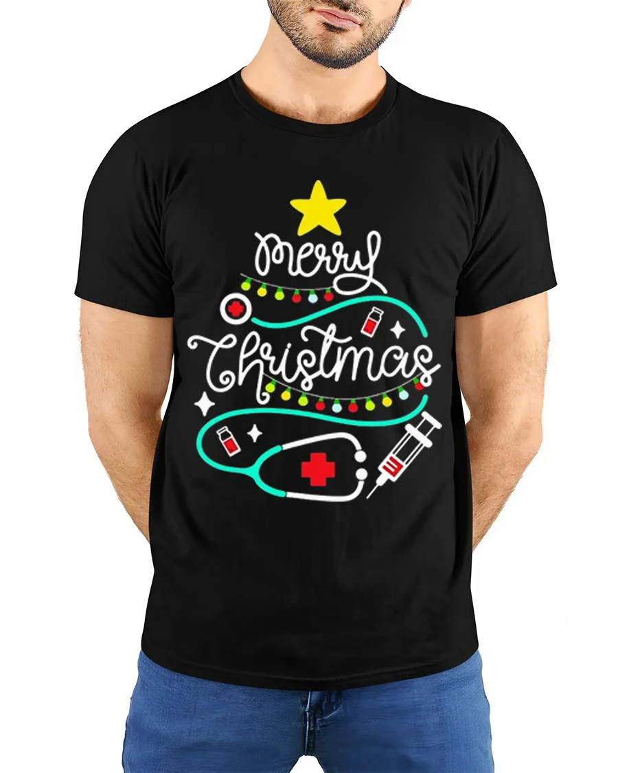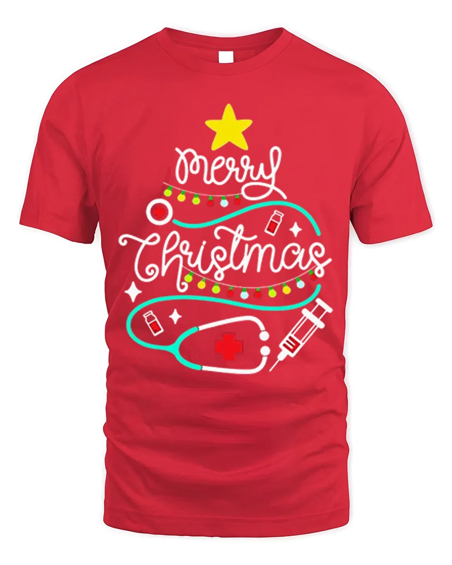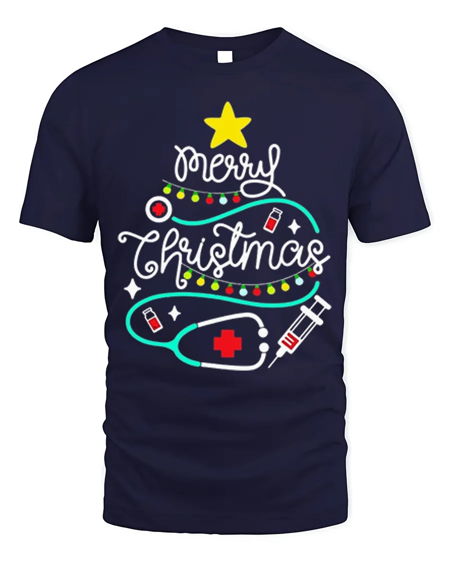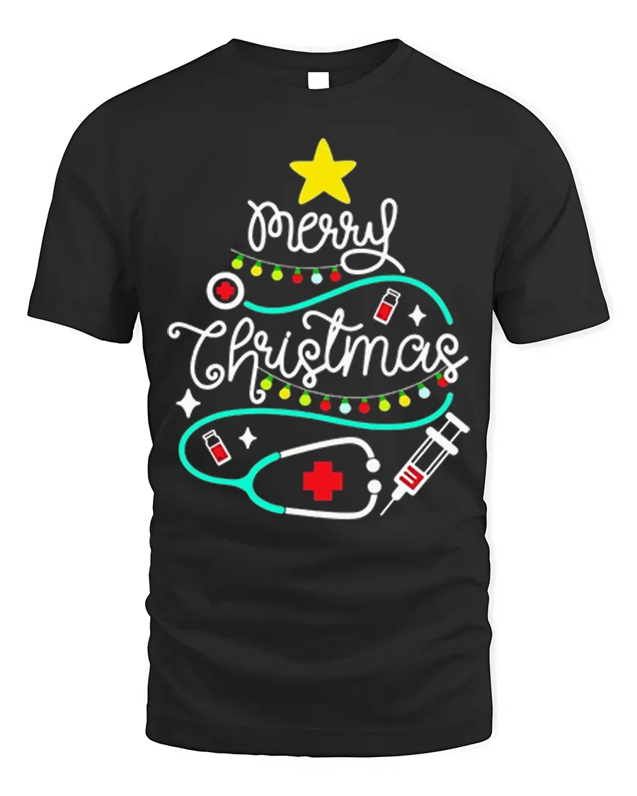 Funny Nurse Merry Christmas T-Shirt with Medical Tree Design