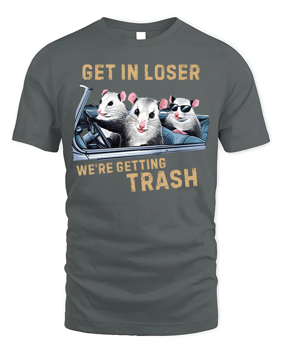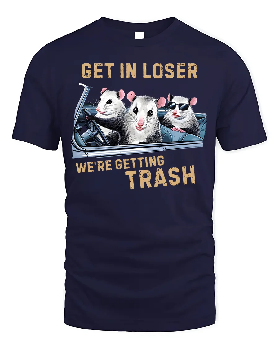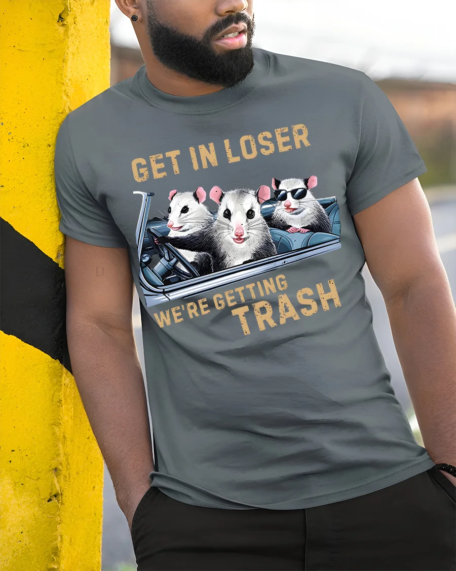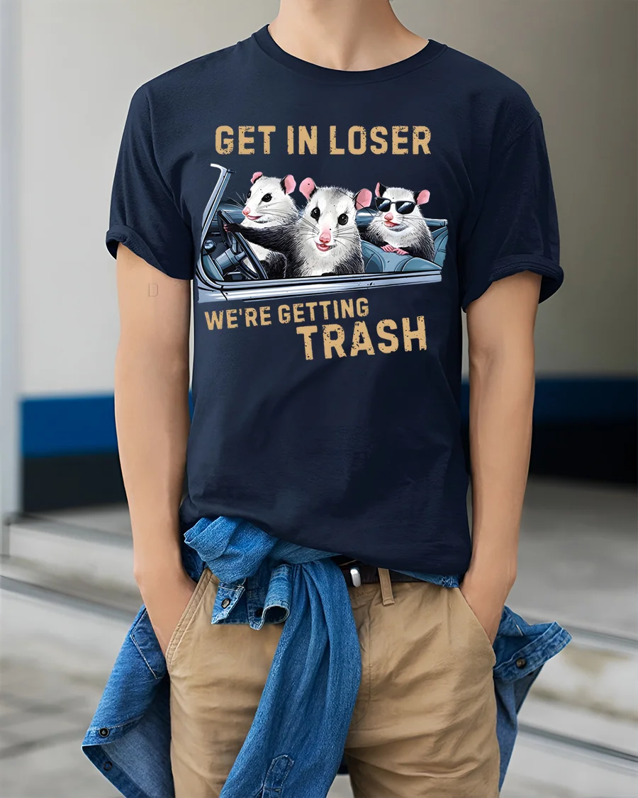 The Funny Opossum Get In Loser Trash Graphic T-Shirt also makes a fun gift idea for animal lovers, humor fans, or anyone who enjoys quirky and unusual apparel. Perfect for casual outings, novelty collections, or just adding a little comedy to your daily outfit, this tee is as versatile as it is entertaining. Make a bold statement and embrace your love for offbeat humor with this unique opossum graphic shirt.