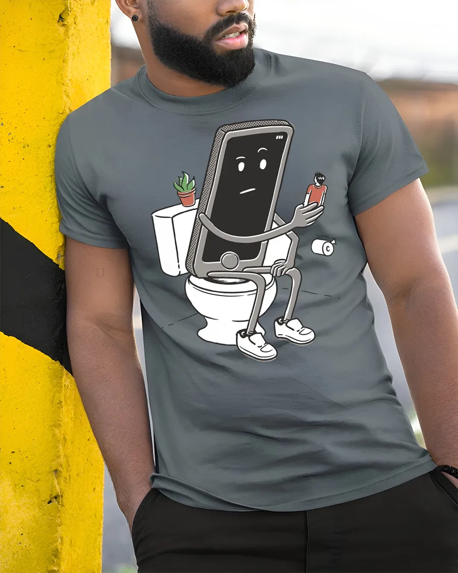 SKU: IMPD1603a8-1 Category: Lifestyle & Funny Tags: cartoon phone tshirt, digital addiction shirt, funny bathroom tee, Funny Cartoon Tee, funny meme shirt, funny phone shirt, lazy phone shirt, modern life humor tee, novelty meme tee, quirky graphic tshirt, relatable humor tshirt, sarcastic humor shirt, social media addiction tee, tech humor tshirt, toilet humor tshirt