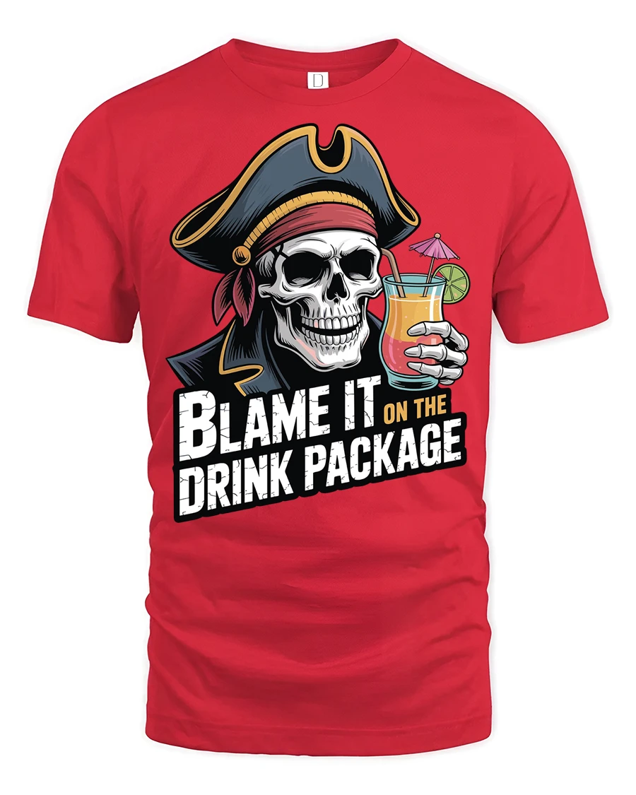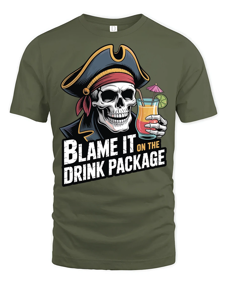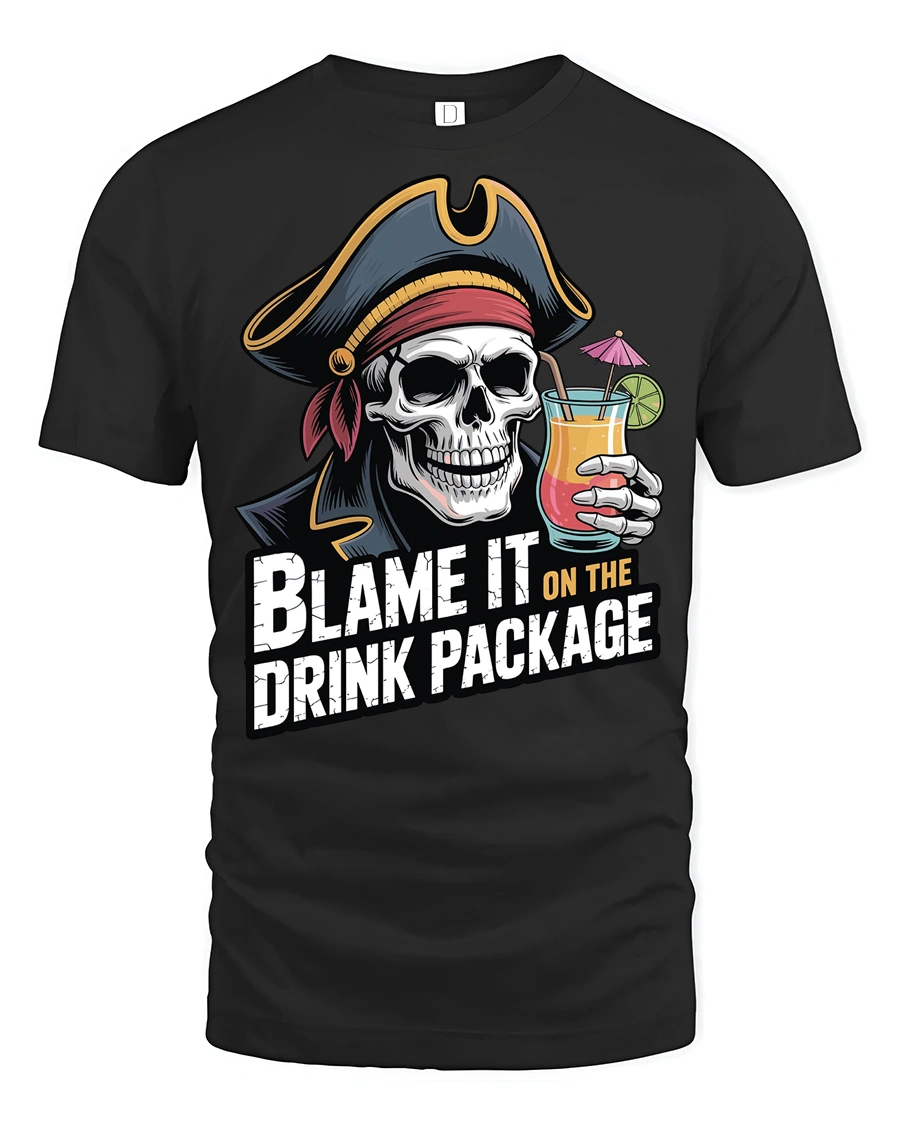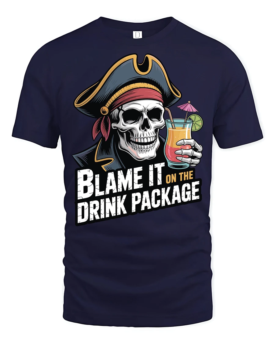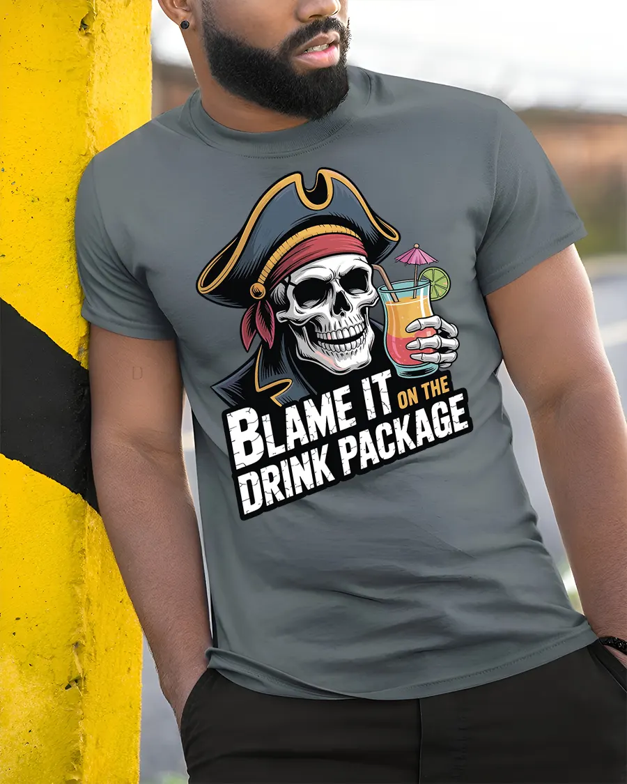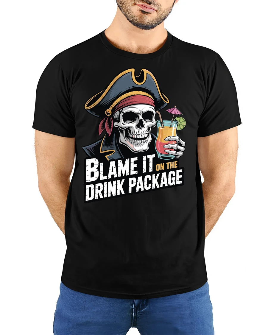 The blame it on the drink package t shirt adds a fun and carefree personality to casual style while embracing the humor of unforgettable nights and vacation memories. Its bold graphic and witty message create an expressive look that stands out with playful attitude and adventurous pirate inspired charm.