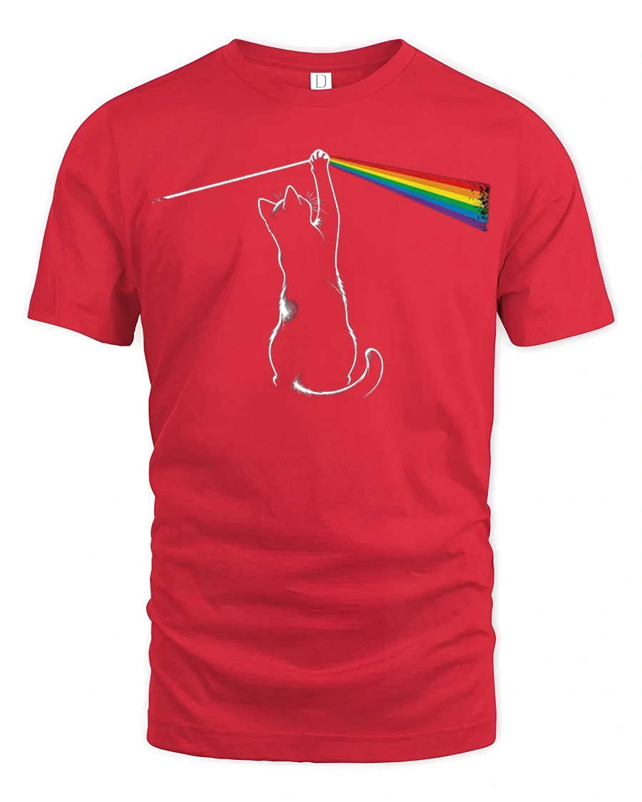 Funny Rainbow Laser Cat Graphic T Shirt Colorful Prism Cat Tee - red t-shirt on white background