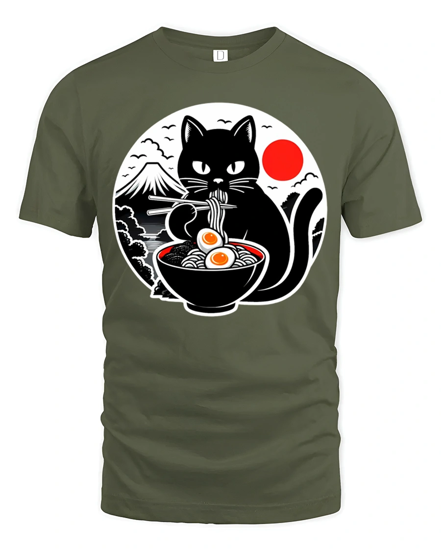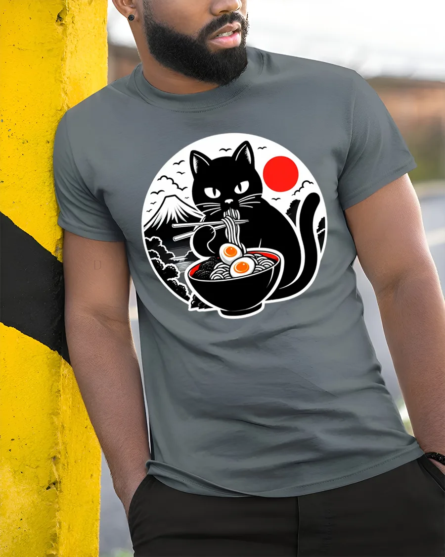 The ramen cat t shirt delivers a relaxed casual style while showcasing a charming illustration that celebrates food culture and cute animal art.