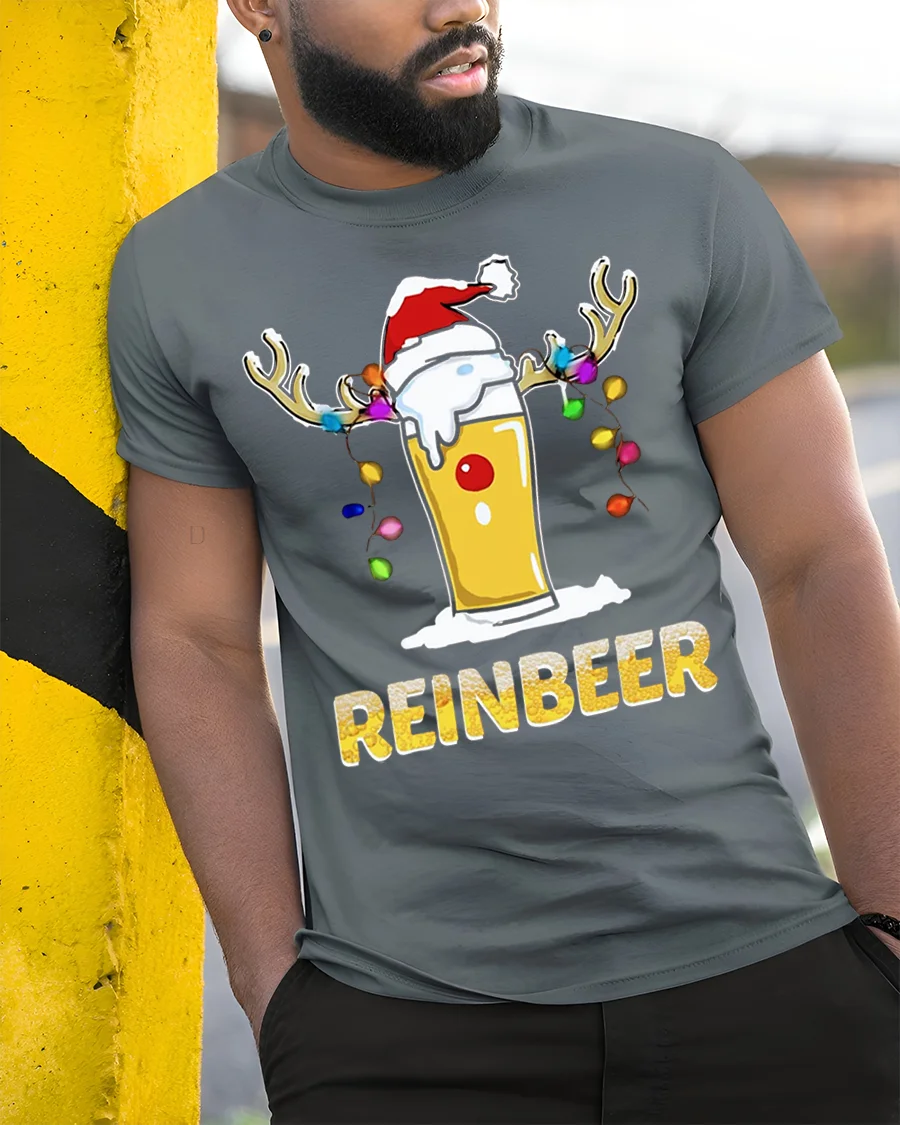 The Funny Reinbeer Christmas T-Shirt with Santa Hat and Lights makes a great gift for dads, brothers, friends, or anyone who enjoys a cold one during the holidays. Perfect for Christmas parties, Secret Santa exchanges, or just spreading laughter this festive season. Add some humor and hops to your wardrobe and celebrate Christmas the fun way — with Reinbeer!