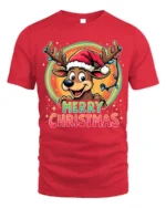 Get into the festive spirit with our Funny Reindeer Merry Christmas T-Shirt Santa Hat Holiday Tee.