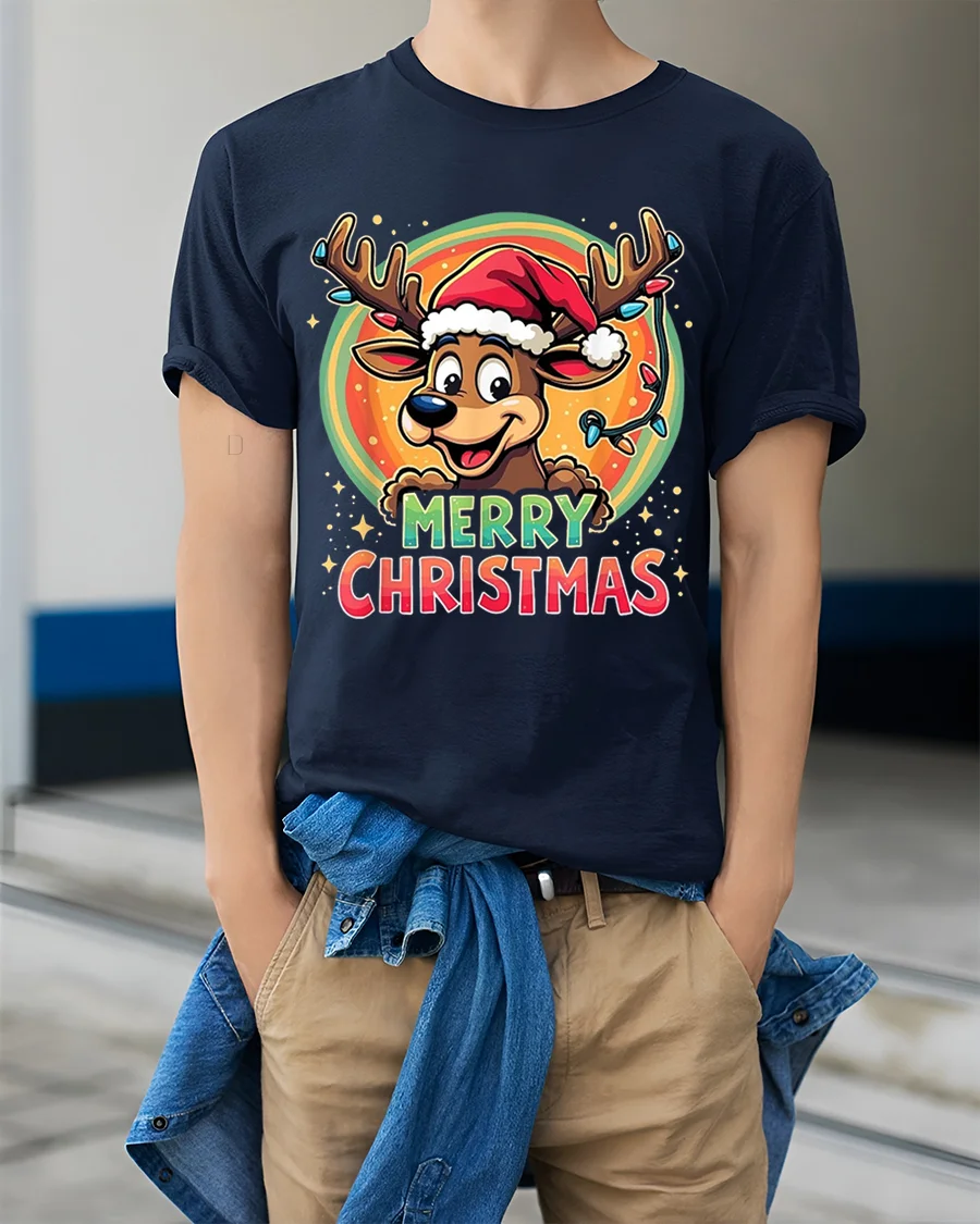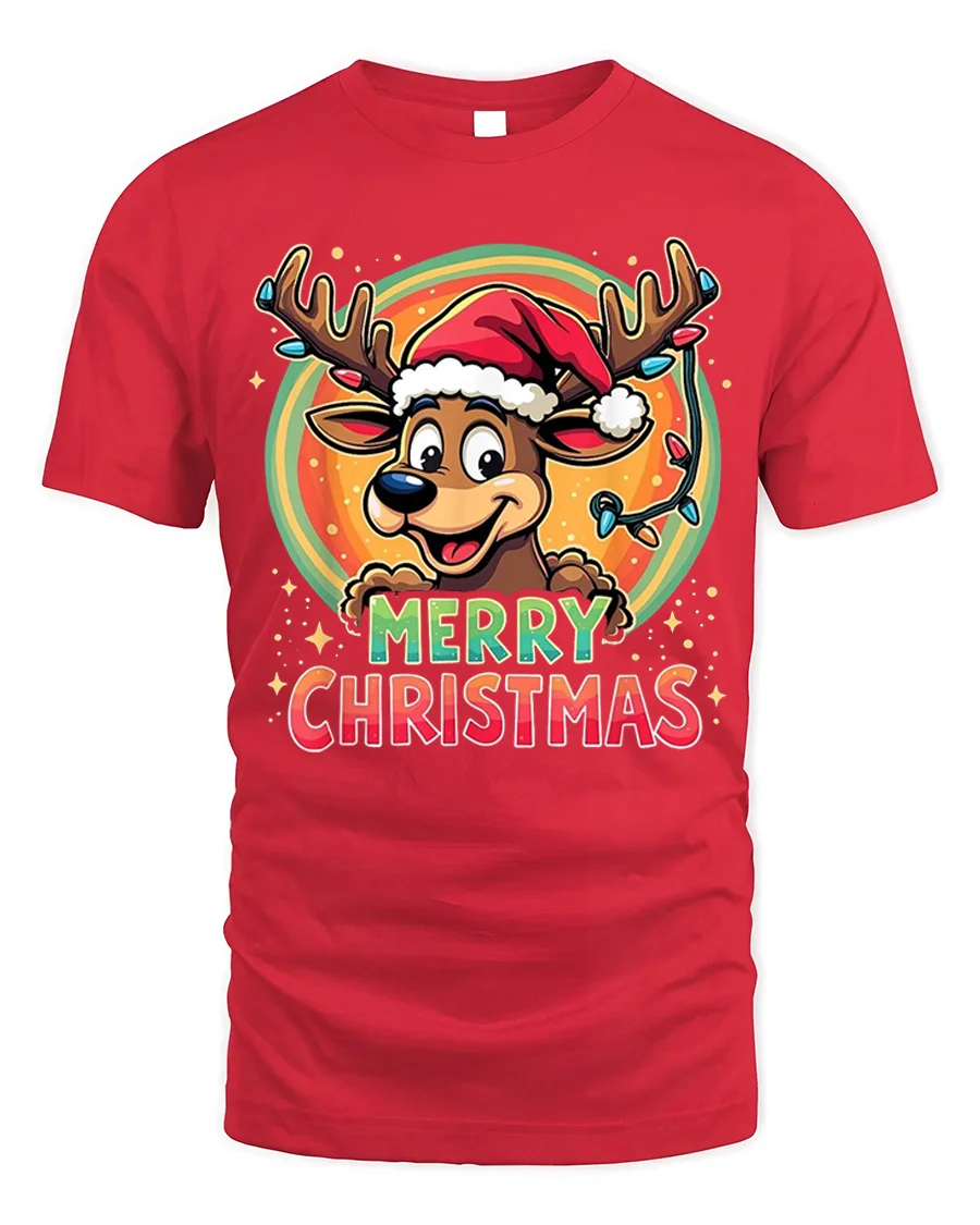 Made from premium-quality cotton, this Christmas reindeer tshirt feels soft, comfortable, and durable.