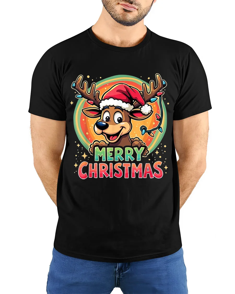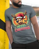 The Funny Reindeer Merry Christmas T-Shirt Santa Hat Holiday Tee makes a great gift for friends, coworkers, or anyone who loves lighthearted Christmas designs.