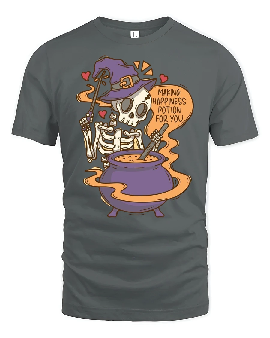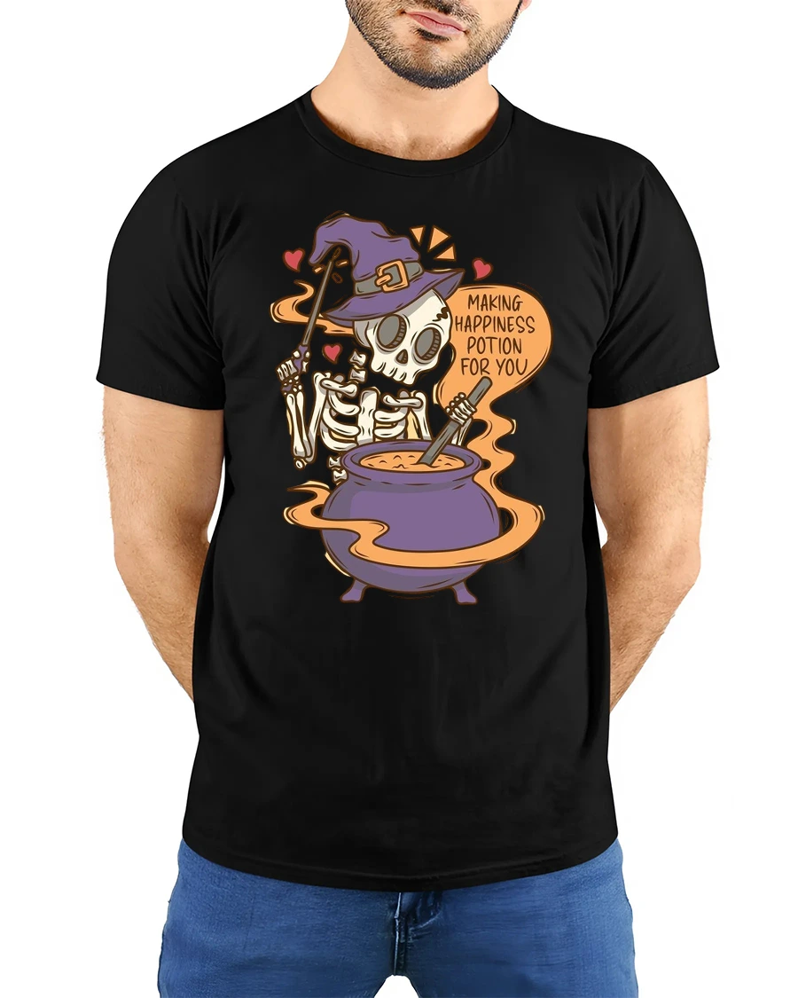 Funny Skeleton Witch Making Happiness Potion Cute Halloween T Shirt is a great choice to express your love for cute and quirky Halloween style.
